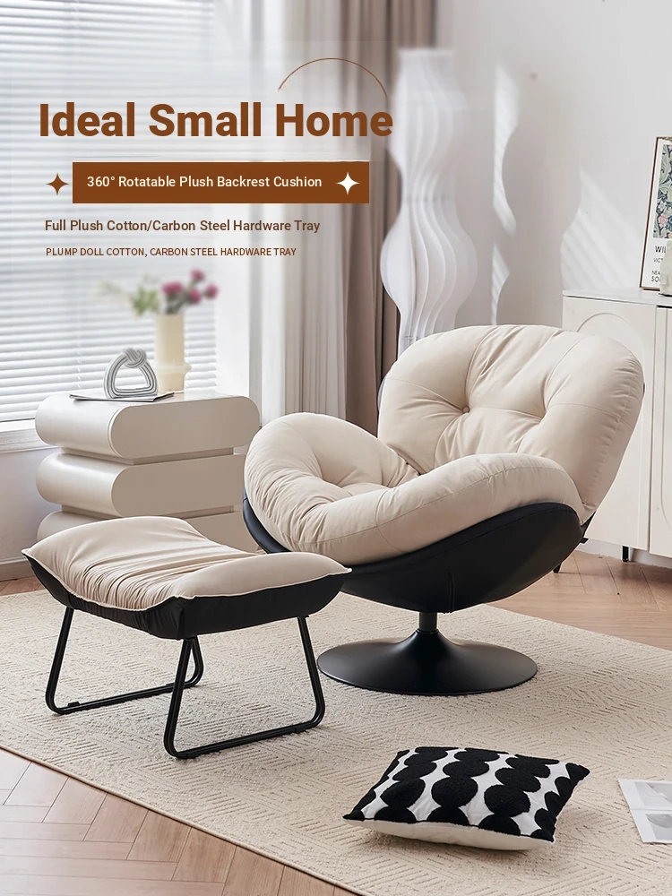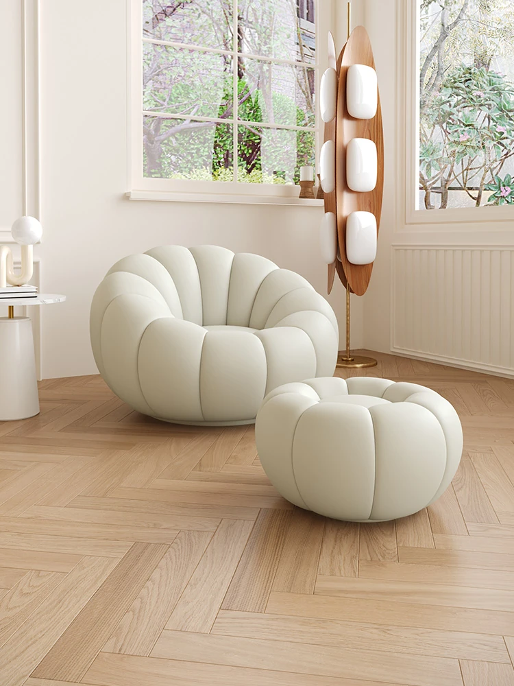 Creamy Lazy Sofa: Versatile Reclining Chair for Balcony, Perfect for Relaxation. Pumpkin-Shaped Single Sofa with Rotating Feature – Ideal for Cozy Nooks and Leisure Moments!