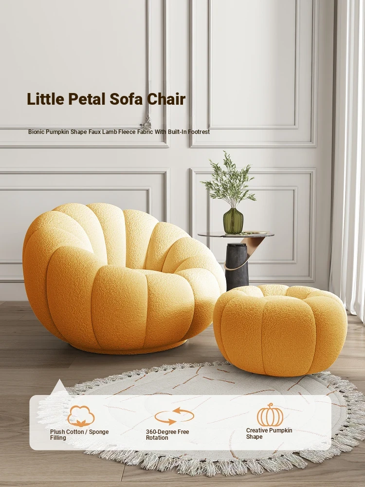 Lazy Petal Sofa in Lamb Fleece – Modern Minimalist Rotating Pumpkin Chair for Bedroom and Balcony – Perfect for Living Room and Home Use
