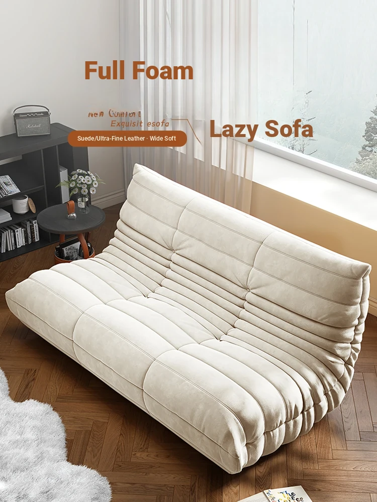 Creamy Lamb Fleece Fabric Sofa for Small Spaces - Modern Minimalist Pumpkin Lazy Sofa with Straight Design, Perfect for Cozy Living Rooms
