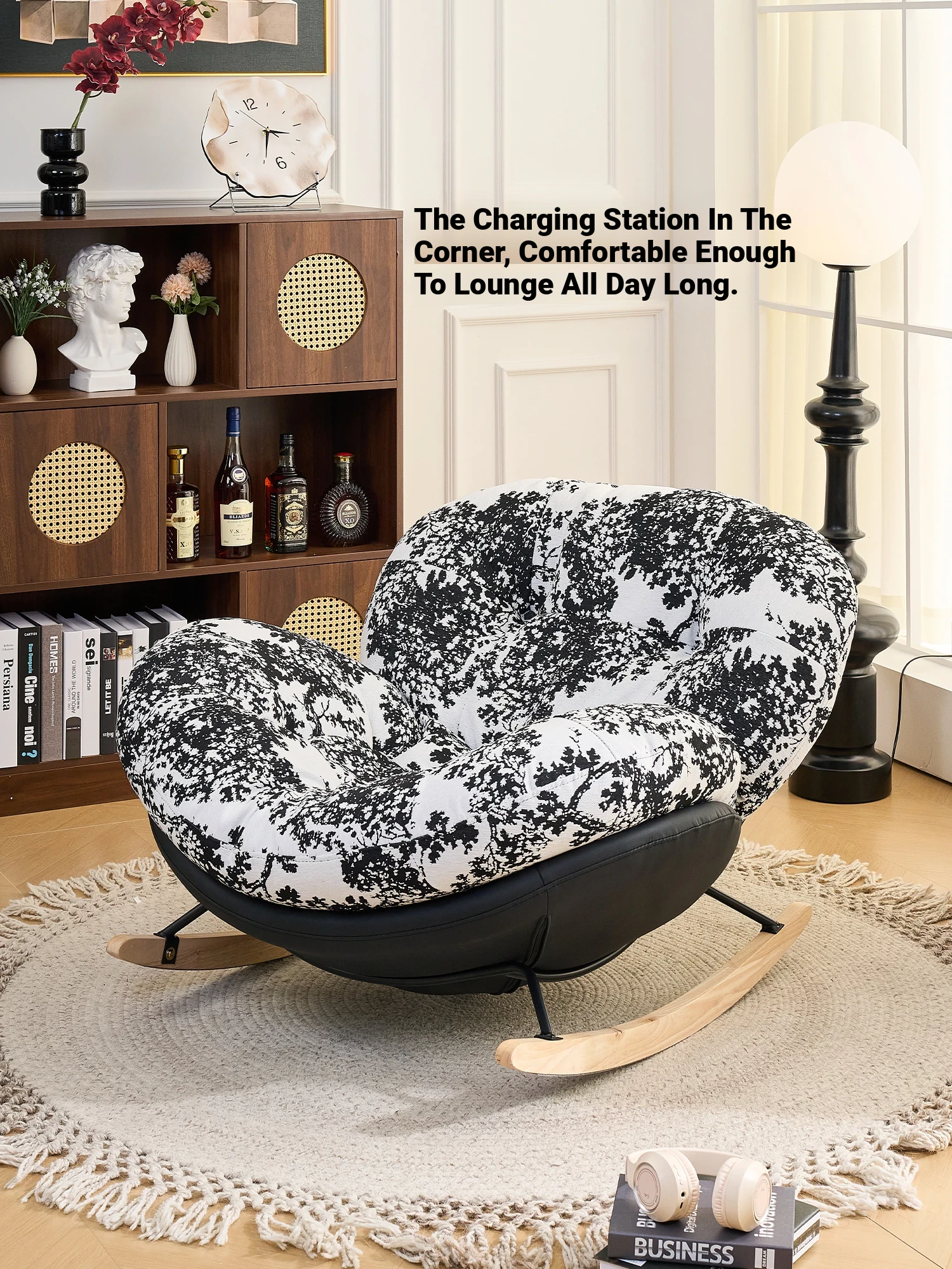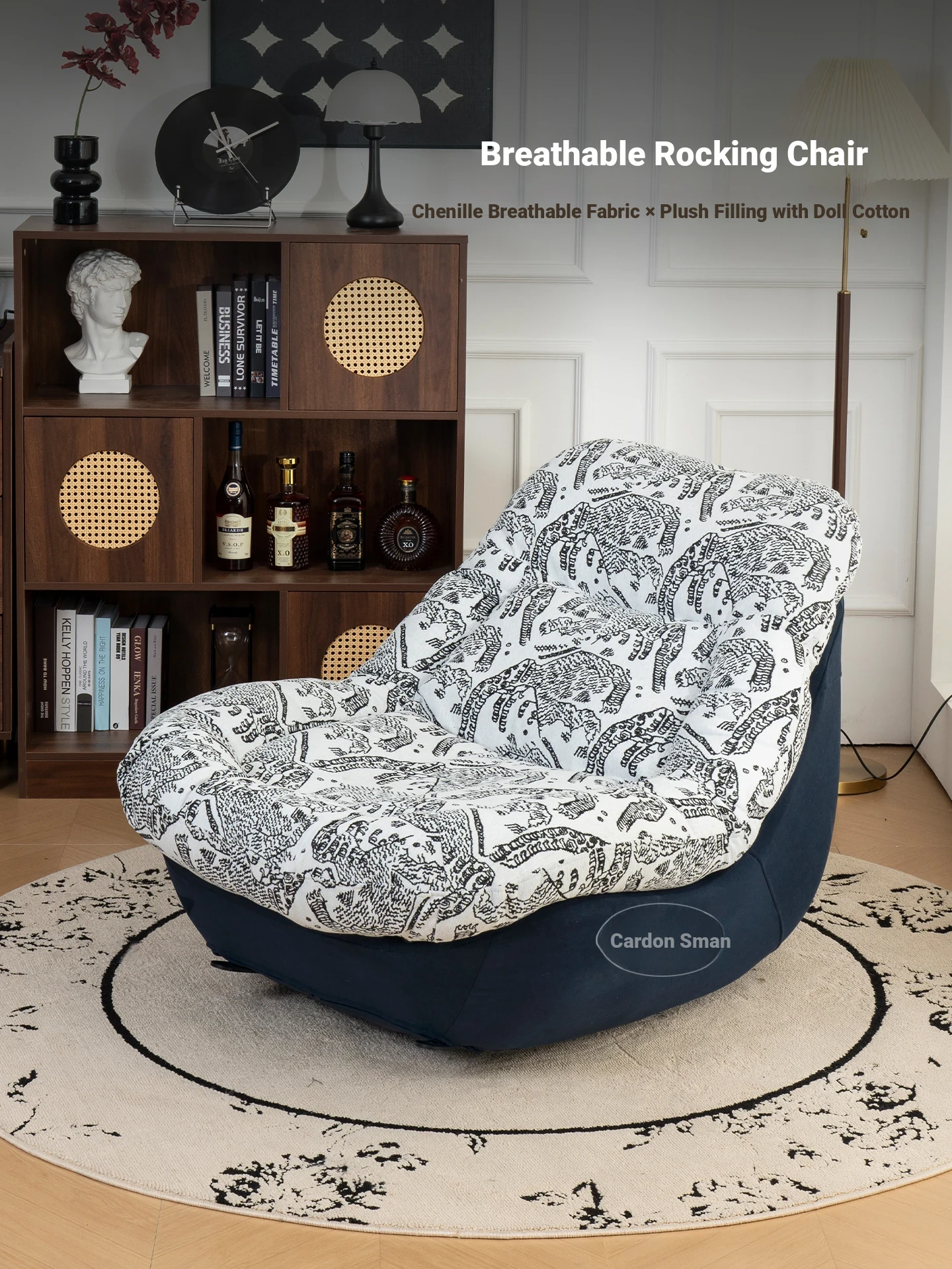 Vintage Single Rocking Chair - Minimalist Design, Versatile for Sitting and Lying Down, Cozy Lazy Chair for Modern Living Spaces, Luxurious yet Relaxed Rocking Recliner.