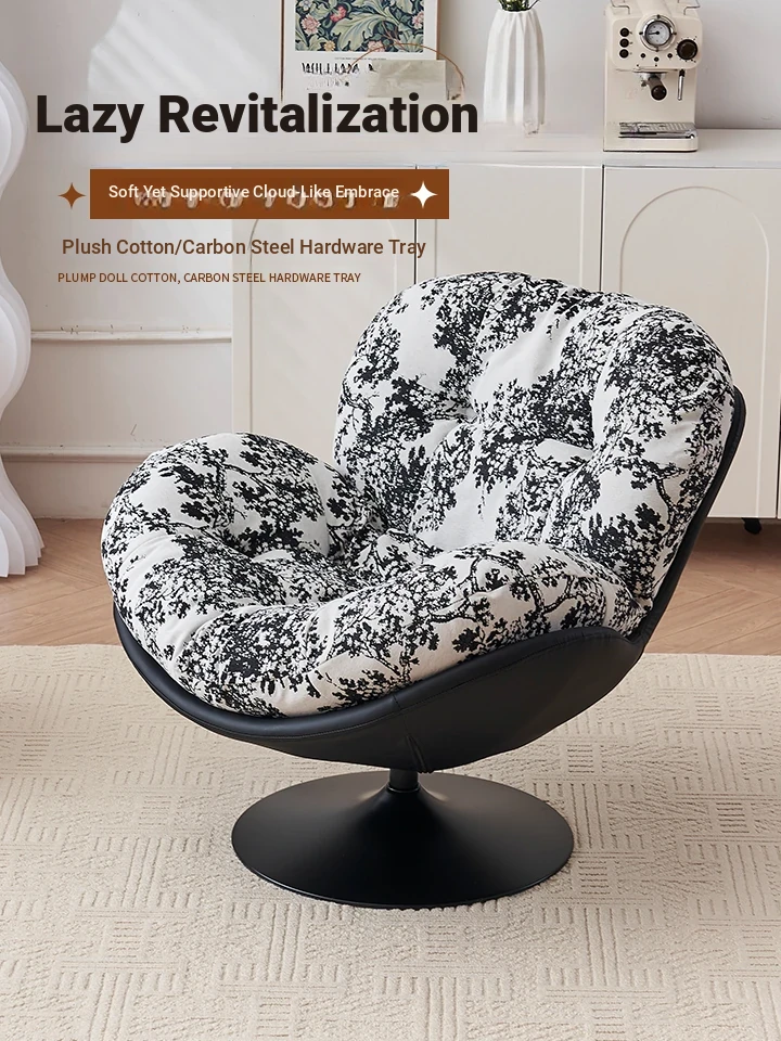 Vintage Lazy Eggshell Sofa Chair - Trendy Balcony Swivel Couch with Floral Fabric for Living Room - Comfortable and Stylish, Perfect for Relaxation and Socializing!