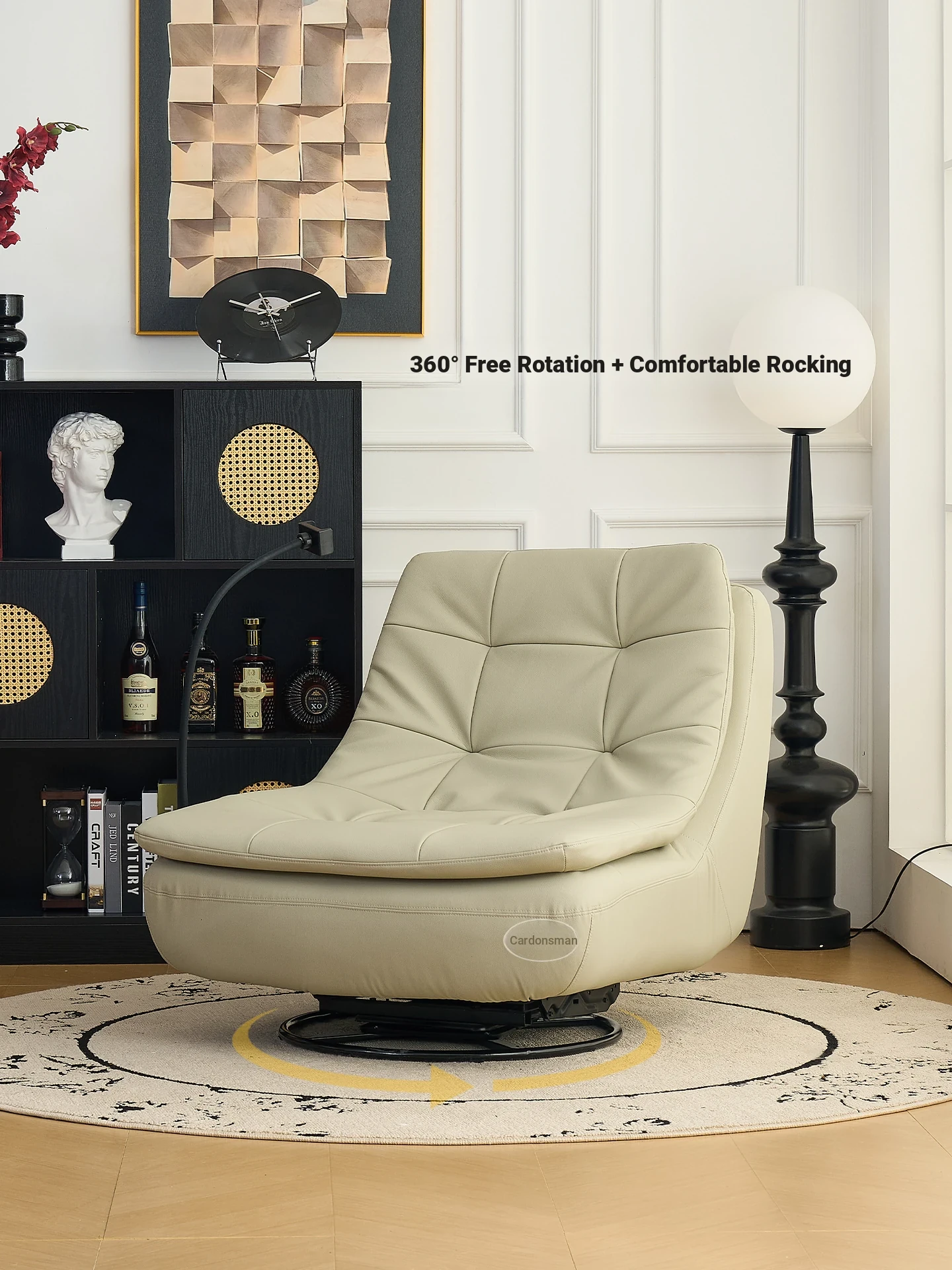 Designer Lazy Sofa Chair - Stylish Single Recliner for Small Spaces, Perfect for Living Room or Balcony. Rotatable Rocking Lounge Chair for Ultimate Comfort and Relaxation.