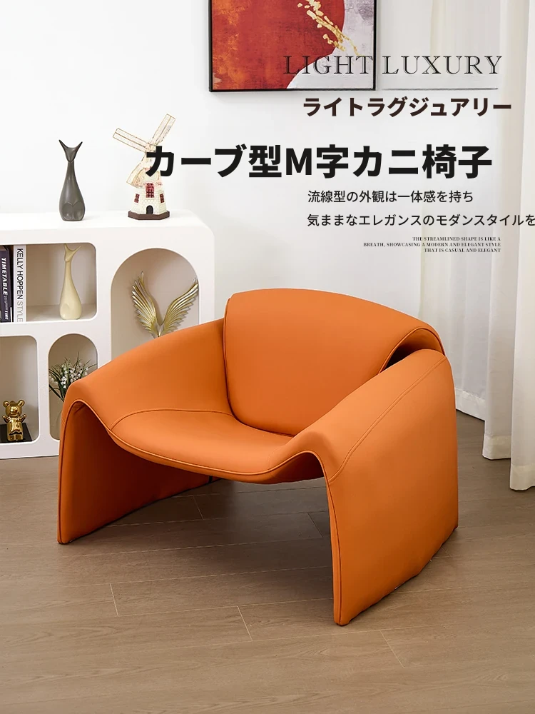 イタリアンミニマリズムデザインのリラックス一人用ソファチェア、ユニークなM型カニ椅子。リビングルームにぴったりなクリエイティブなスタイルで、別荘の軽やかなラグジュアリーを演出します。