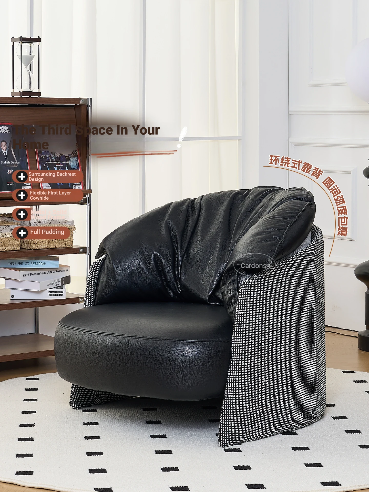 Designer Lazy Sofa Chair in Top-Grain Leather – Simple and Stylish Armchair for Living Room, Balcony, or Bedroom – Perfect for Relaxation and Comfort