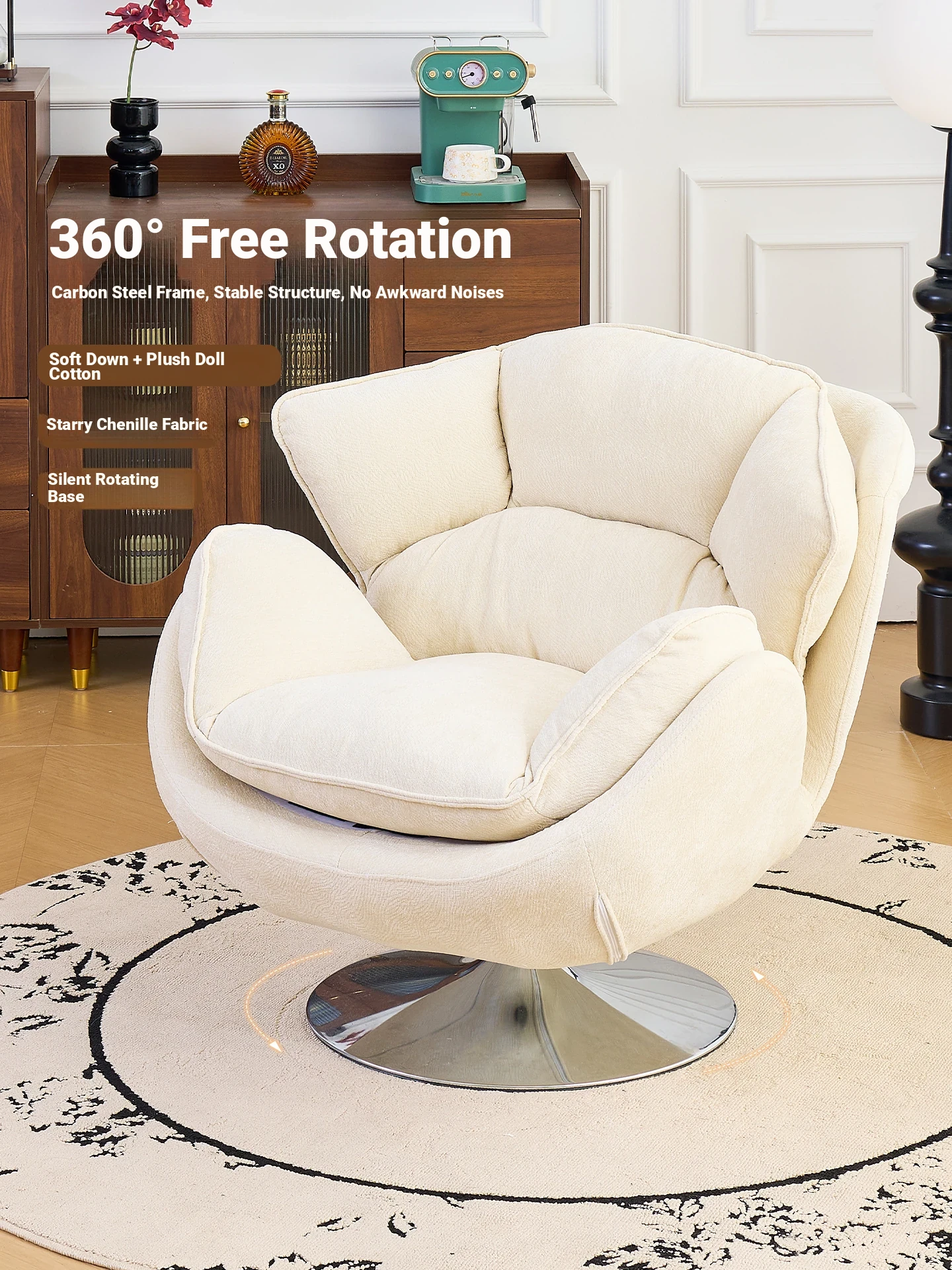 Lawrence 360° Rotating Single Sofa Chair - Luxurious Ergonomic Lounge Chair for Home Living Room, Perfect for Relaxation and Comfort