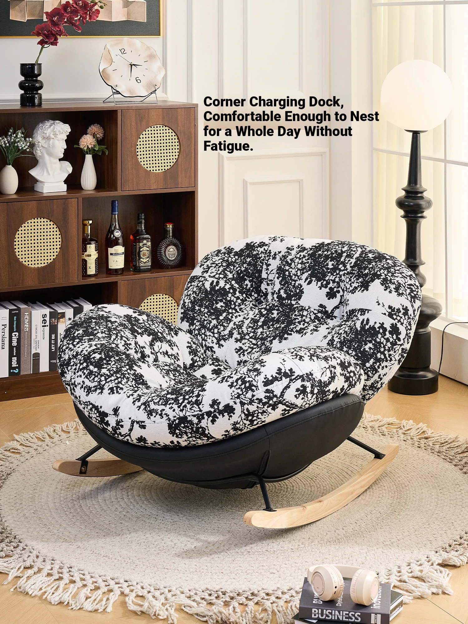 Eggshell Rocking Chair - Cozy Reclining Sofa for Small Spaces, Perfect for Living Room Relaxation - Stylish Single Seat Lounge Chair