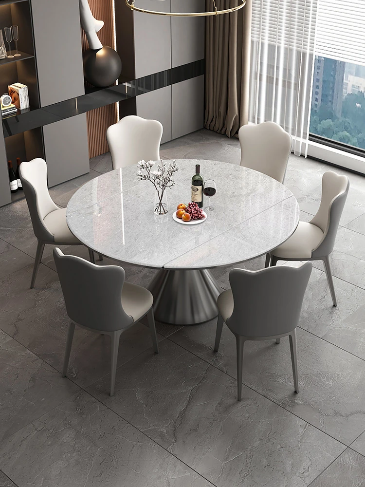 輸入品ミラノホワイトストーン伸縮式ダイニングテーブル|イタリアンミニマリズムの高級感!大理石の円形テーブルと椅子のセットで、エレガントな食卓を演出します。