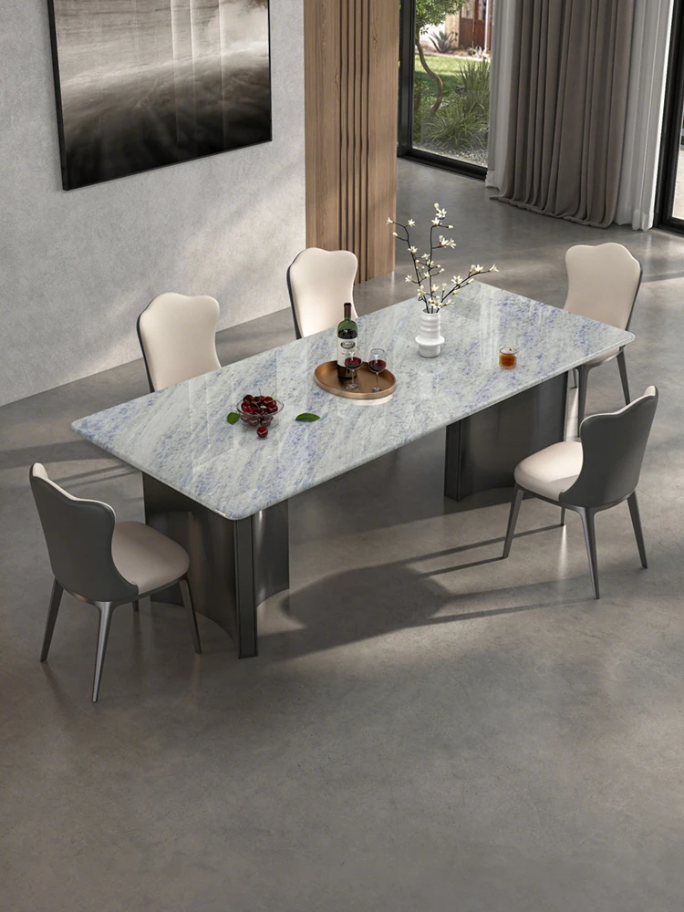高級感溢れる大理石長方形ダイニングテーブル|ブルークリスタル仕様|新作モダンイタリアンスタイル|別荘や家庭に最適なダイニングセット!