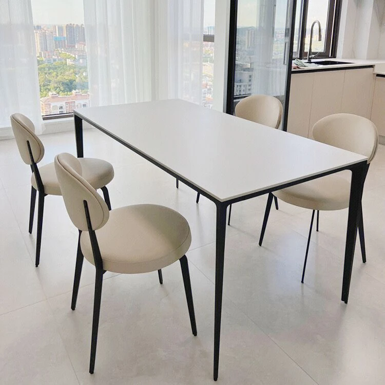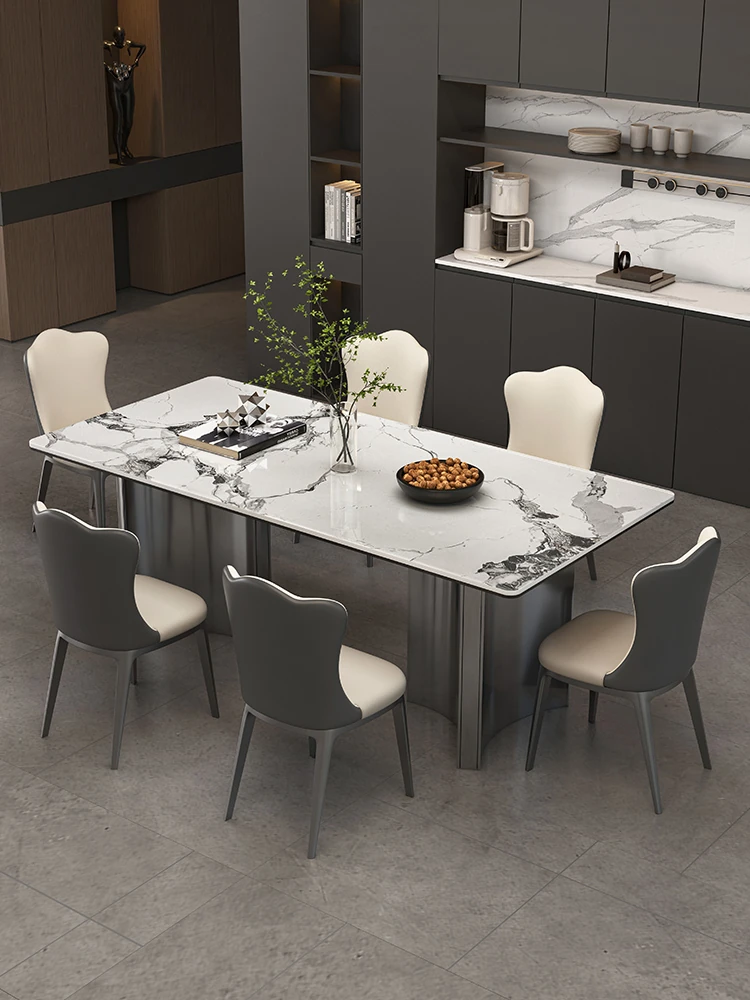 新作!軽奢感溢れるイタリアンスタイルの長方形モダンテーブルセット - 上質な岩板デザインで、居心地の良いダイニング空間を演出。シンプルで洗練されたデザインが、あなたのリビングを格上げします!