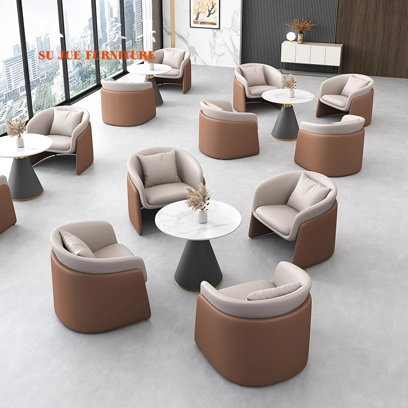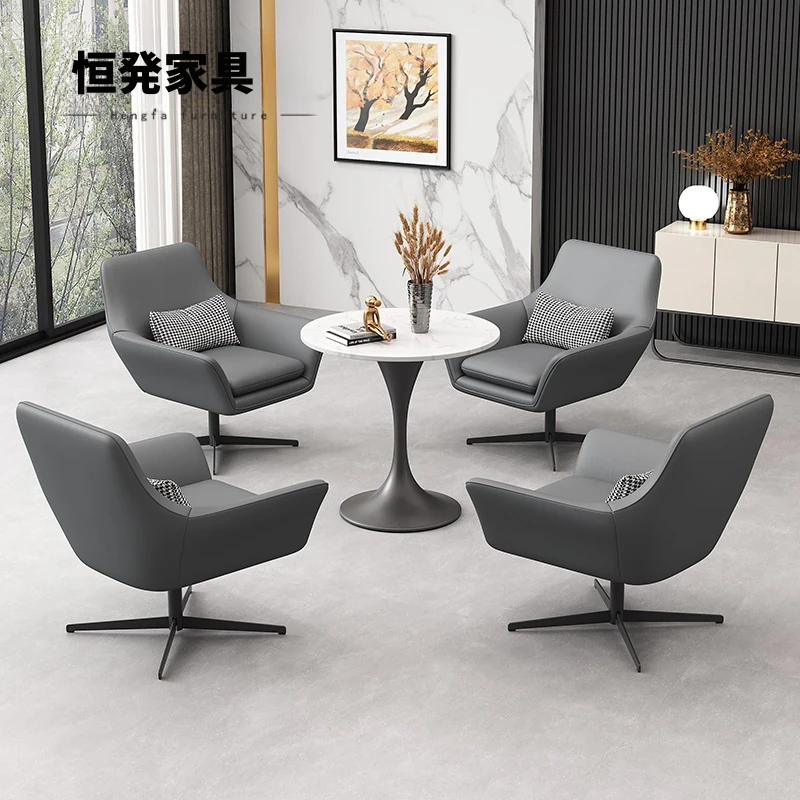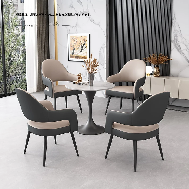 不動産販売所に最適!4脚付きの小円テーブルと椅子のコンビネーション、リラックスできる休憩エリアにぴったり。ホテルの接客や商談にも最適なシンプルでスタイリッシュなデザイン!