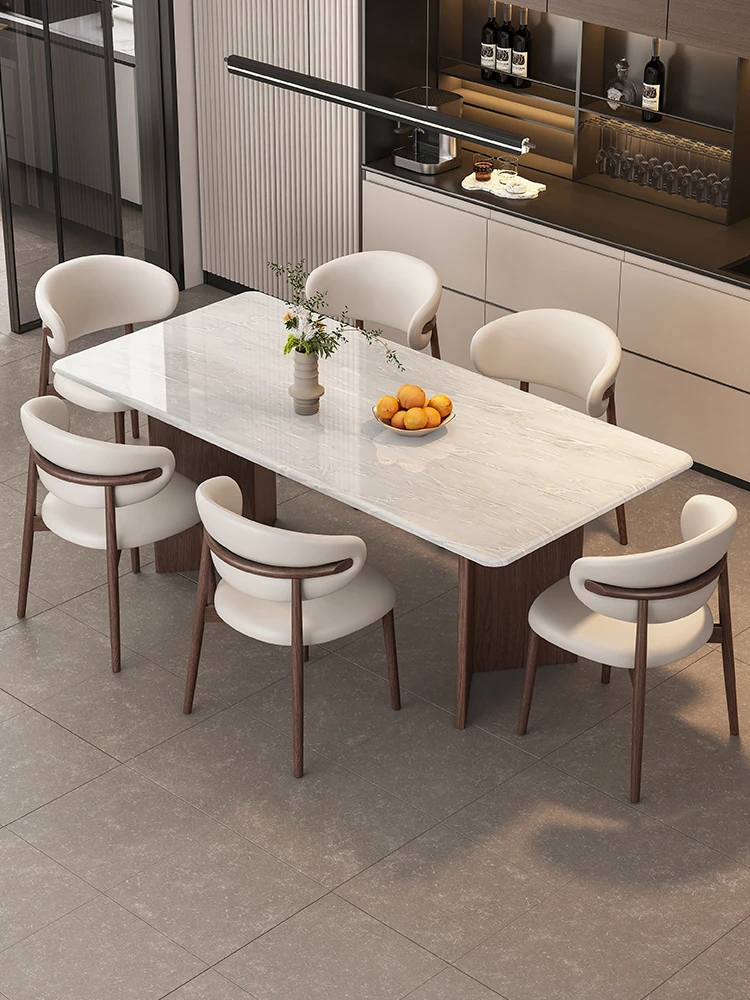 イタリアンラグジュアリー天然大理石ダイニングテーブルセット - モダンでシンプルな高級感あふれる長方形テーブル、リビングルームに最適な家用家具!