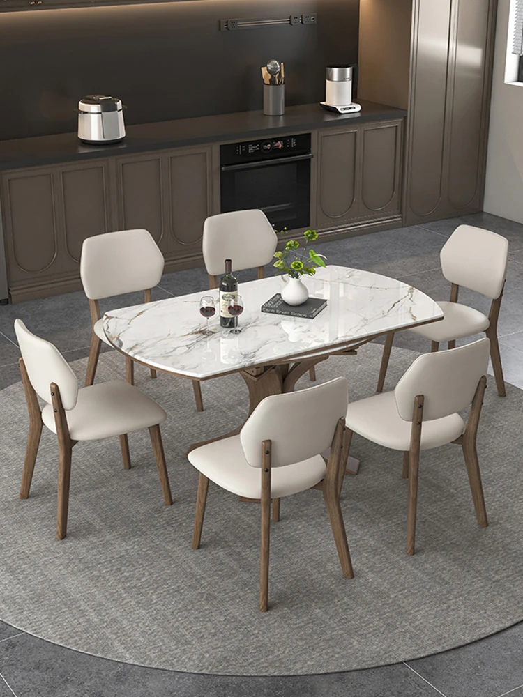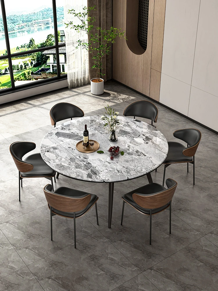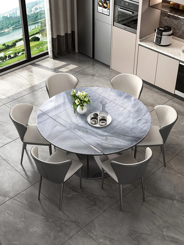 天然ミクロクリスタルストーン伸縮式ダイニングテーブル イタリアンデザインの新作 高級感あふれる丸型テーブル 小型住宅向け 大理石のダイニングテーブルとチェアのセットで、洗練された食卓を演出!