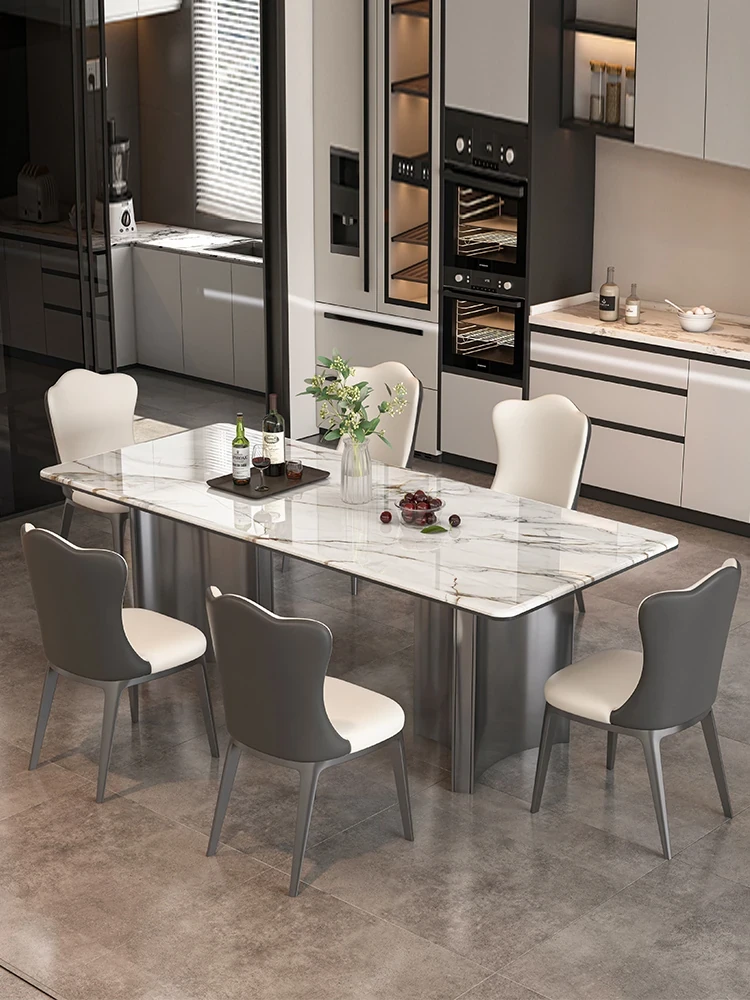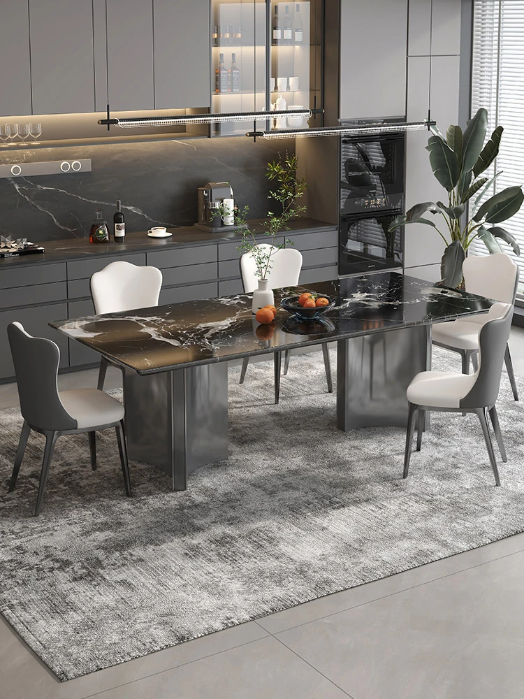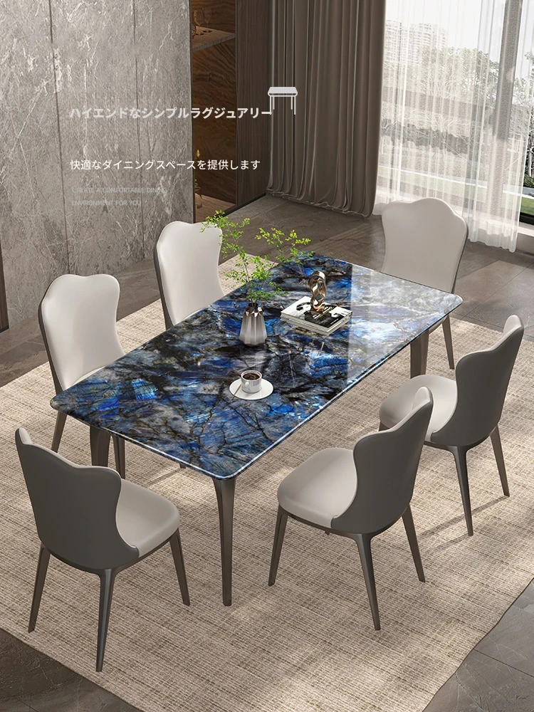 輸入天然カリーアイスストーンの高級イタリアン大理石ダイニングテーブル - スタイリッシュな長方形デザインで、贅沢な食事体験を演出!家庭用に最適な軽やかな高級感をお楽しみください。