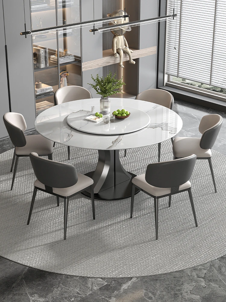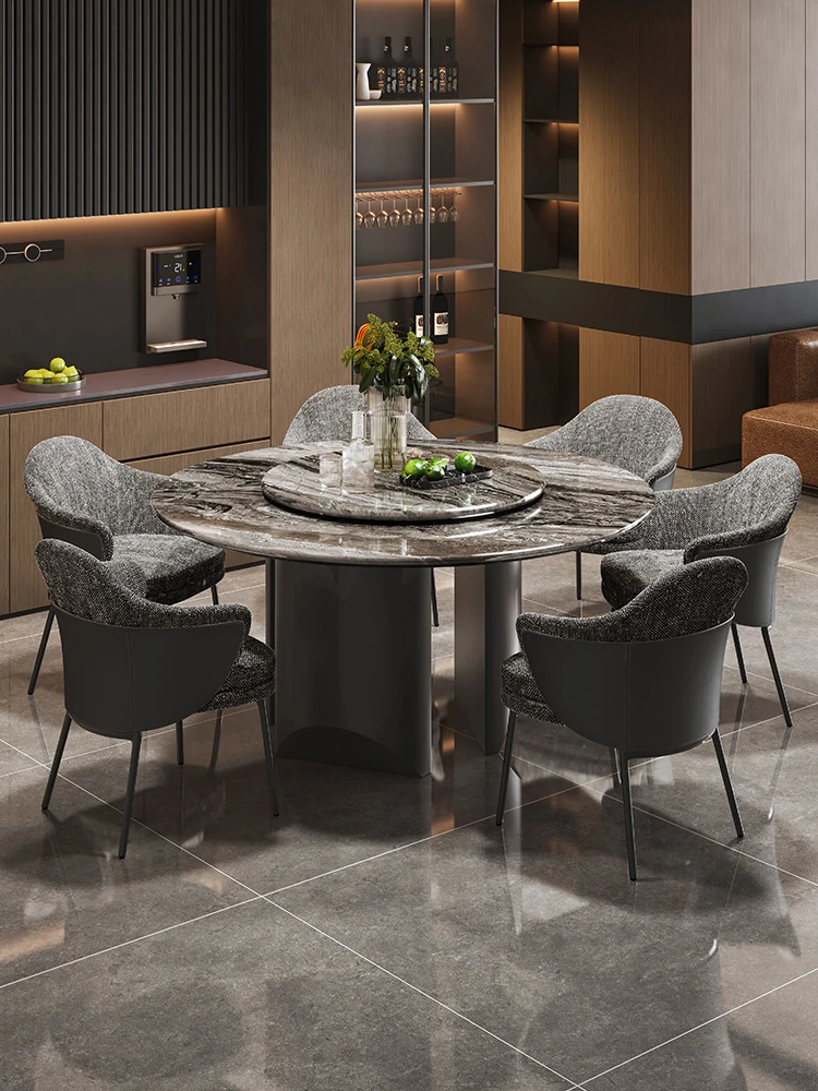 イタリアン高級大理石ラウンドダイニングテーブル 2025年新作 モダンミニマルなライトラグジュアリー 家庭用コンパクトサイズチェアセット