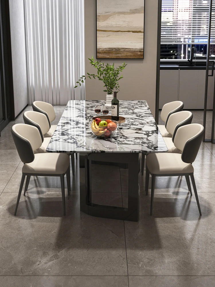 2025年新作!洗練された大理石ダイニングテーブル - モダンでシンプルな長方形デザイン。高級感あふれるイタリアンスタイルで、家庭用に最適なダイニングセット。あなたの食卓を華やかに彩ります!