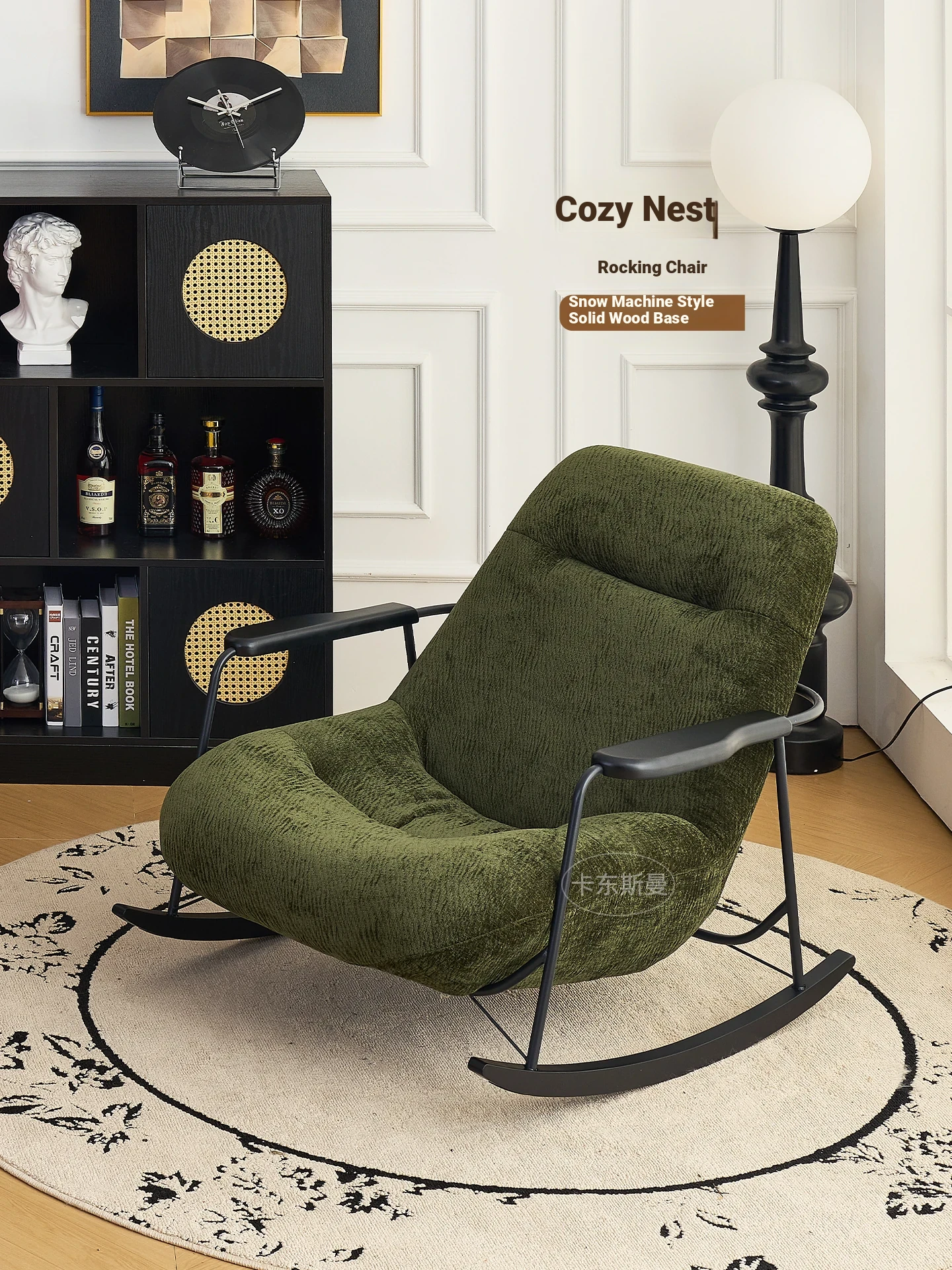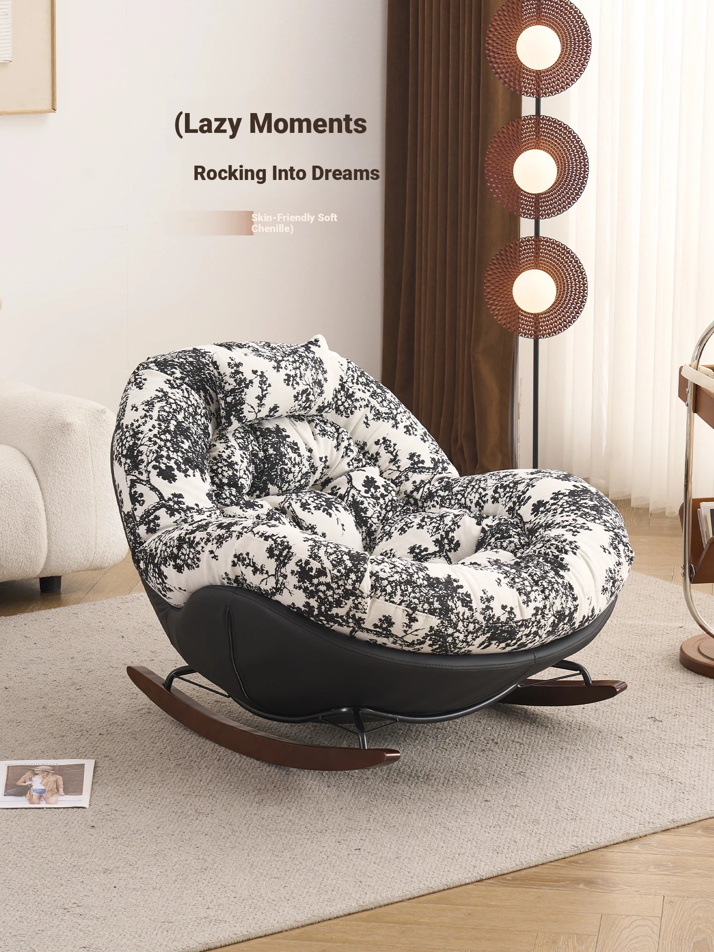Ink Wash Single Rocking Chair - Cozy Lounge Sofa for Living Room & Balcony - Ideal for Afternoon Naps - Stylish & Comfortable Home Recliner - Perfect for Villas & Relaxation - Trendy Design