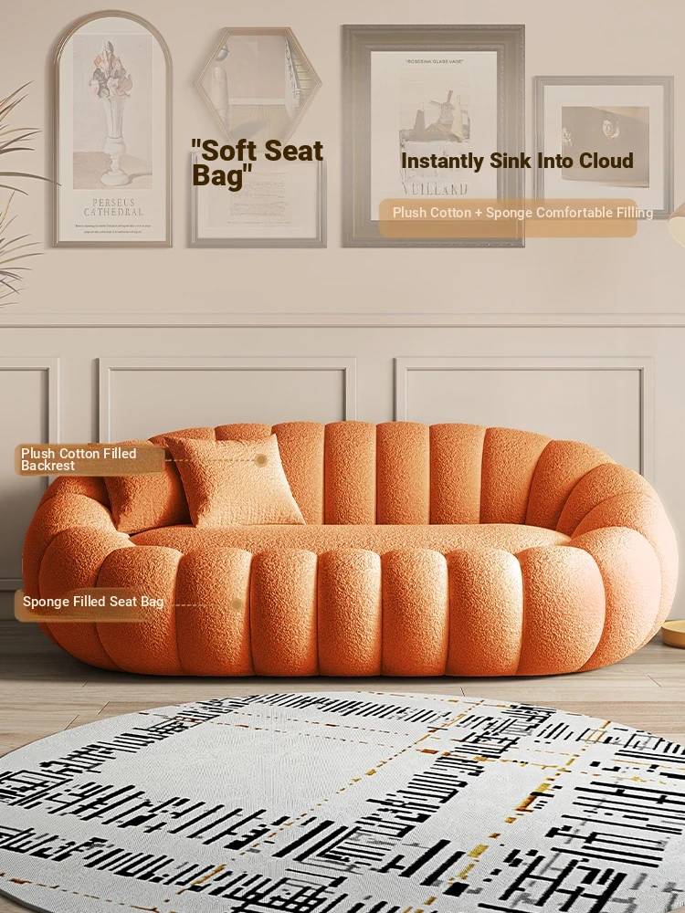 Creamy Cozy Pumpkin Sofa Chair - Versatile Recliner for Relaxation, Perfect for Balcony or Bedroom, Single Seat with Luxurious Lamb Velvet for Ultimate Comfort and Style.