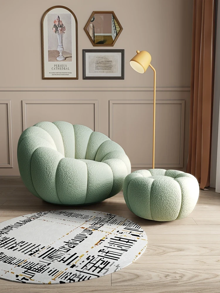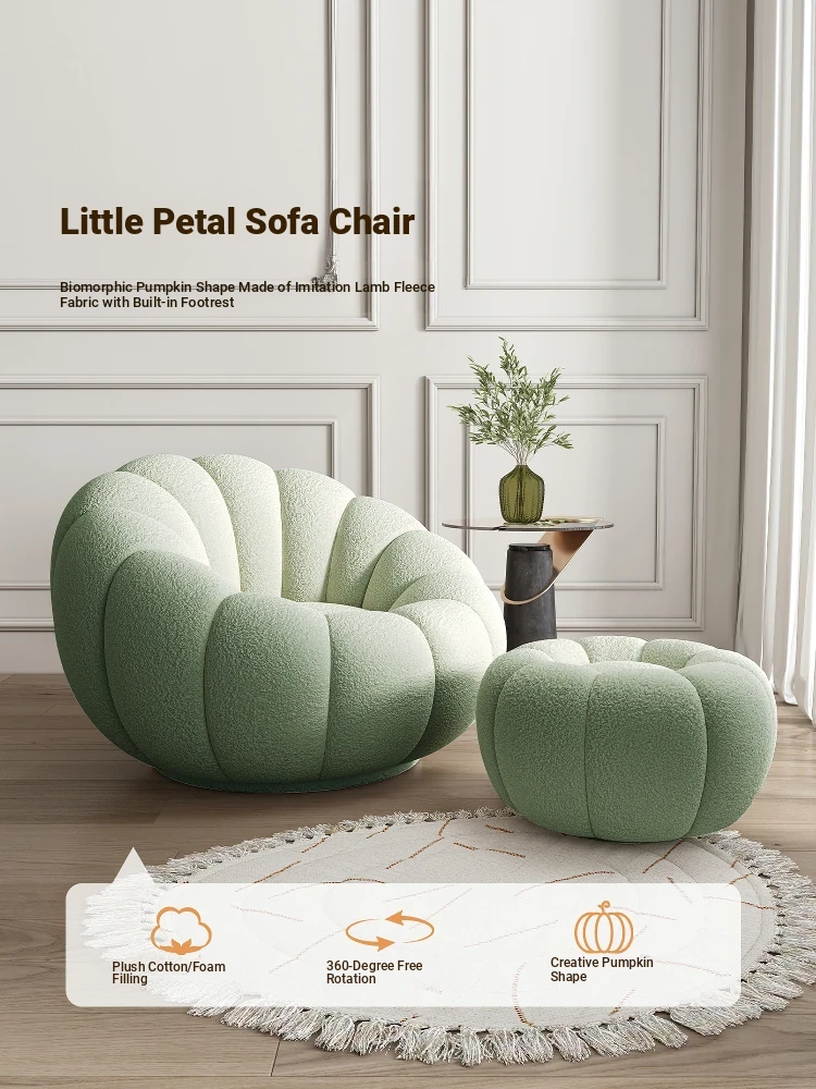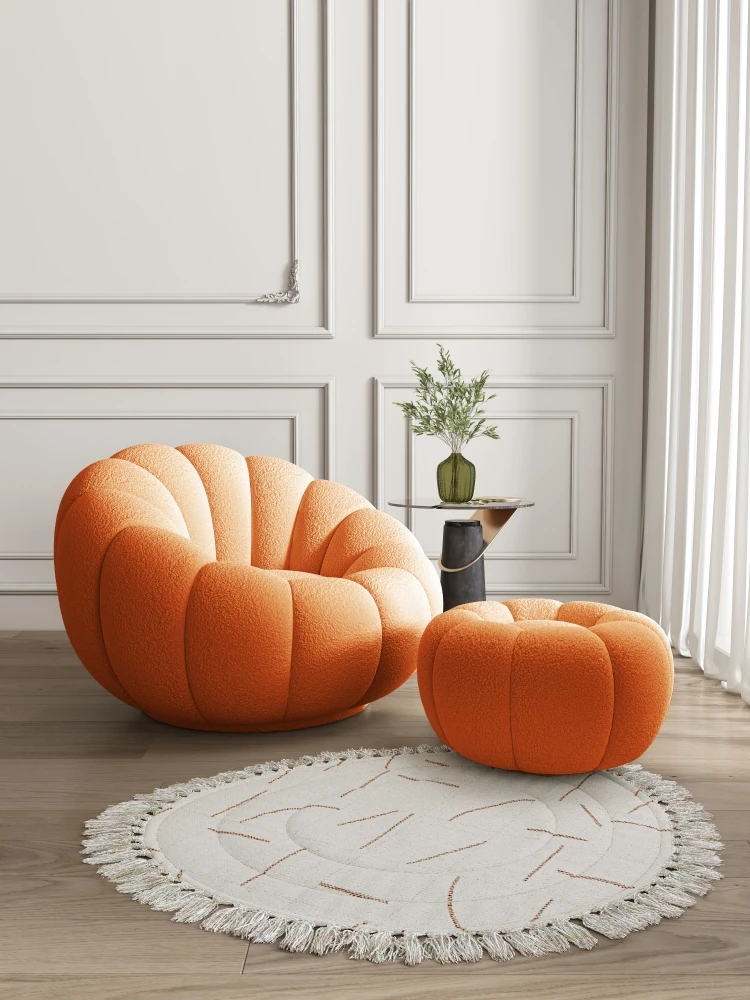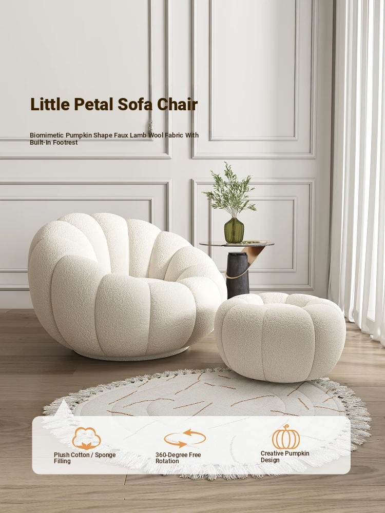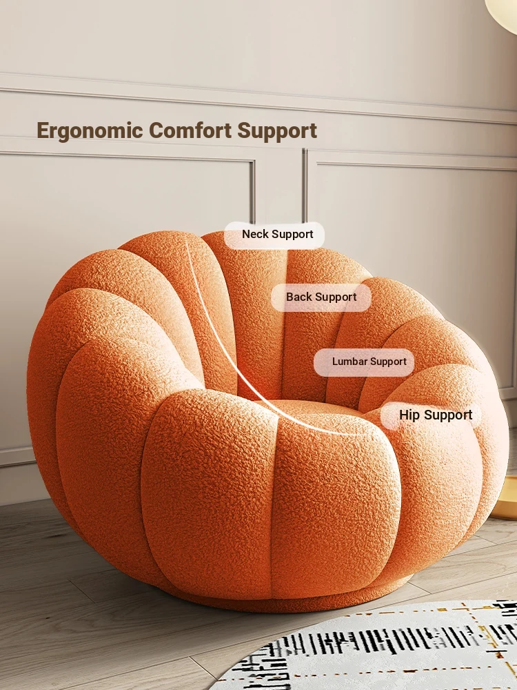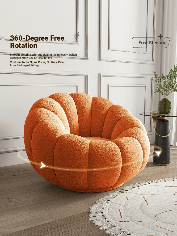 Cozy Lamb Fleece Pumpkin Sofa Chair - Trendy Rotating Single Armchair for Living Room and Balcony, Perfect for Tatami Relaxation and Leisure