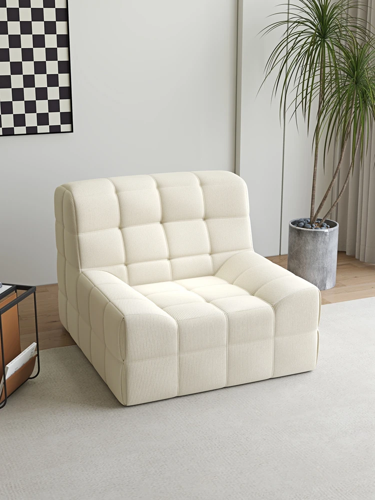 Creamy Lazy Sofa Bed - Versatile Waffle Design, Cozy Checkered Lamb Fleece Upholstery, Perfect for Relaxation and Napping - Ideal Single Chair for Home Comfort