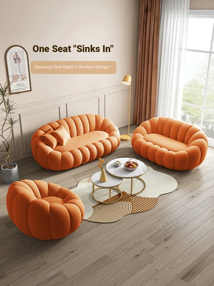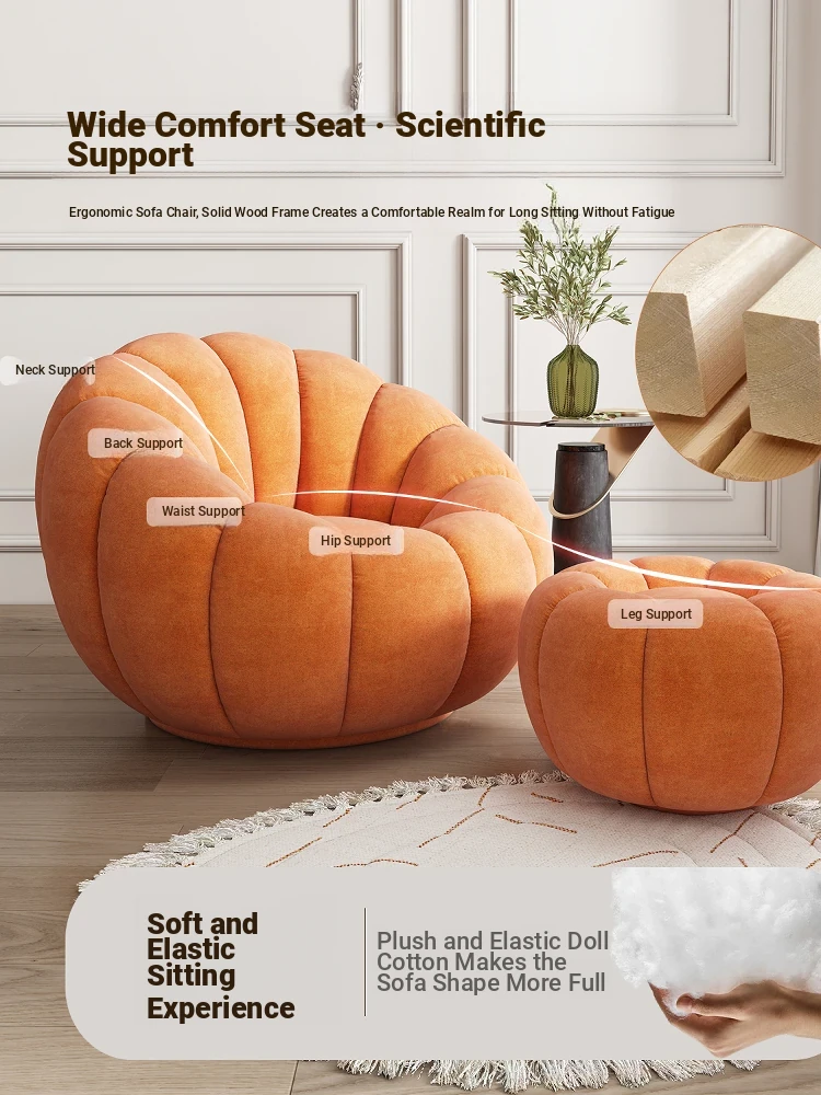 Cozy Ins-Style Lazy Pumpkin Sofa Chair - Versatile Single Lounger for Relaxing, Sleeping, and Unwinding in Your Balcony or Bedroom - Plush Lambswool Fabric for Ultimate Comfort