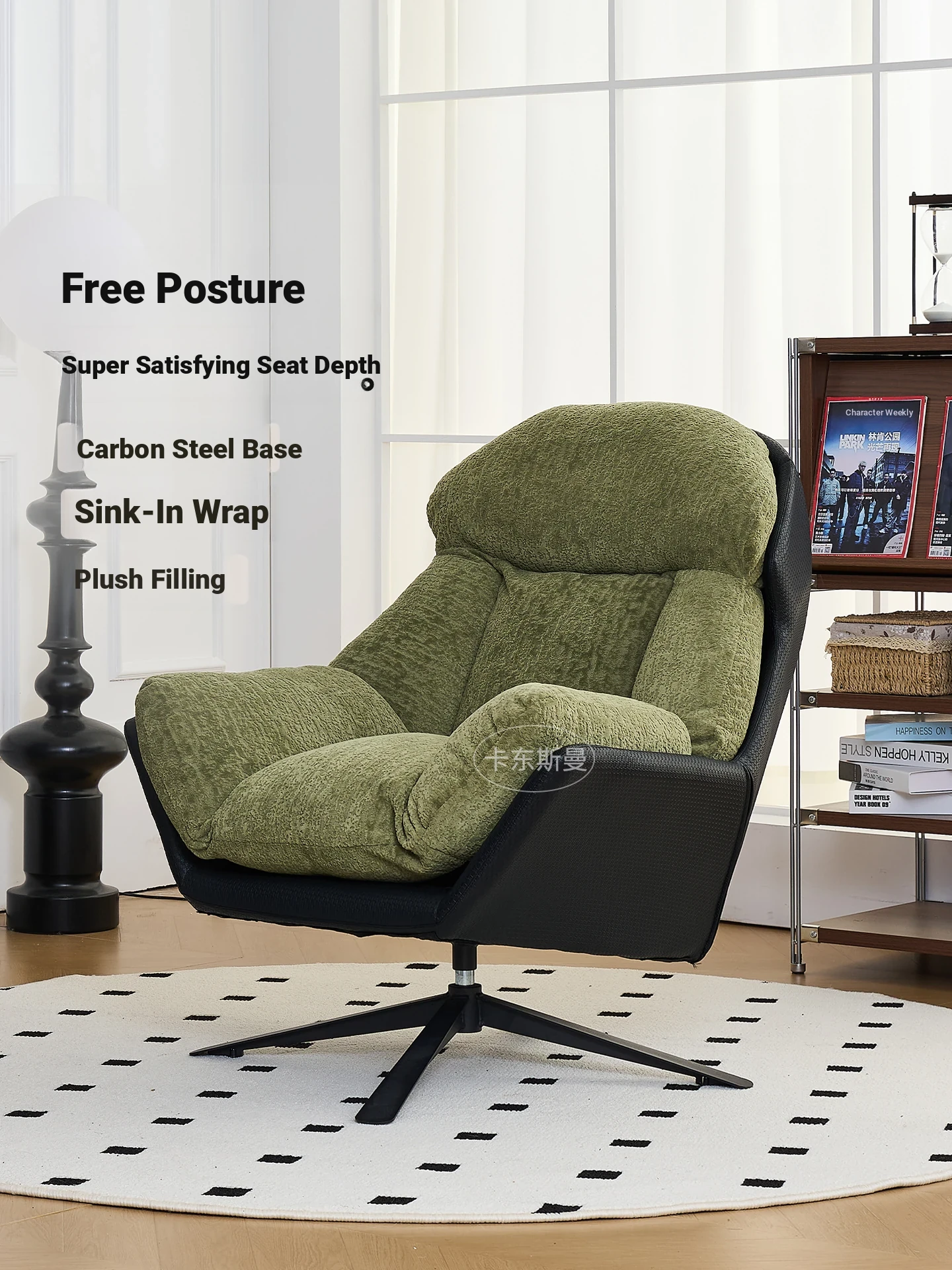 Luxurious Single Sofa Chair for Living Room or Balcony - Stylish Lazy Chair with 360-Degree Swivel Design, Perfect for Relaxation and Comfort.