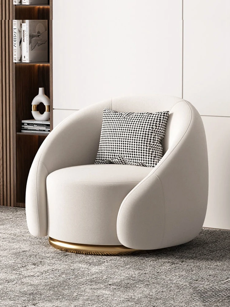 Nordic Style Single Sofa Chair - Rotating Lounge Chair for Home Living Room, Lightweight Luxury Lazy Chair for Balcony, Fabric Recliner Sofa for Ultimate Relaxation