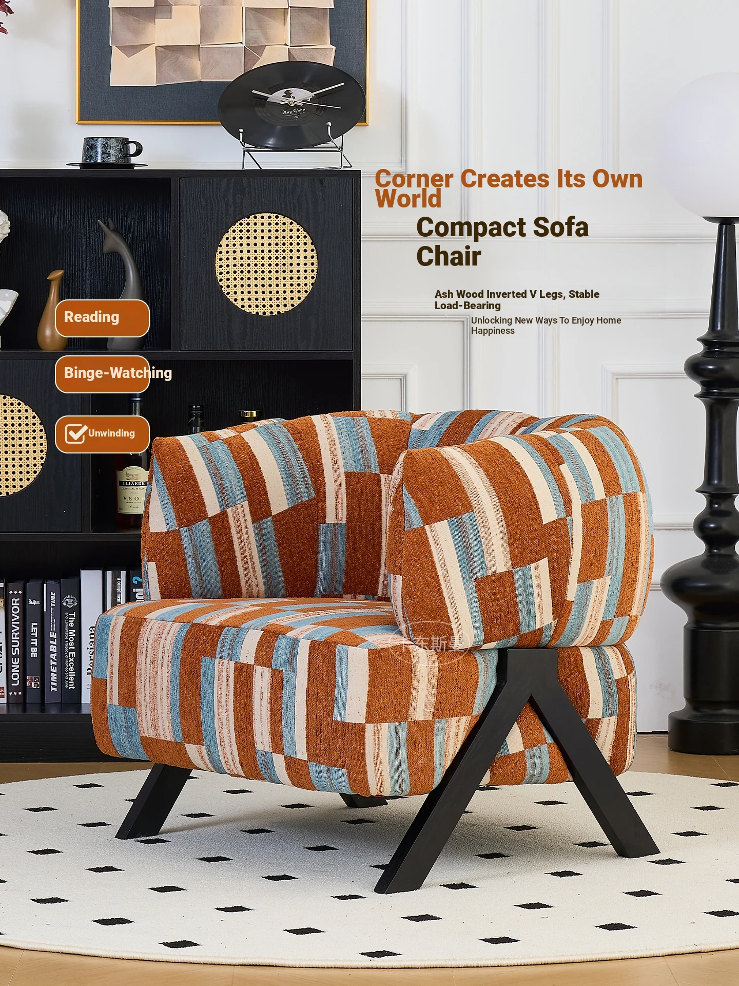 Nordic Style Single Sofa Chair - Cozy Lounge Chair for Home Living Room, Hotels, and Guesthouses - Vintage Croissant Chair for Relaxation on Your Balcony
