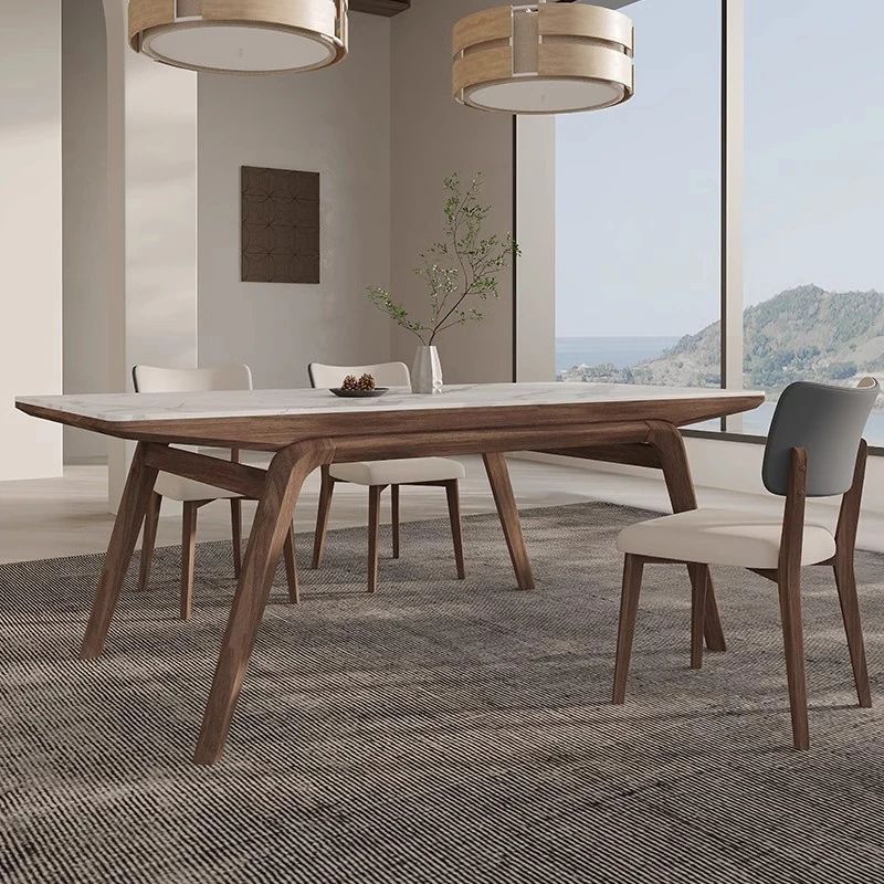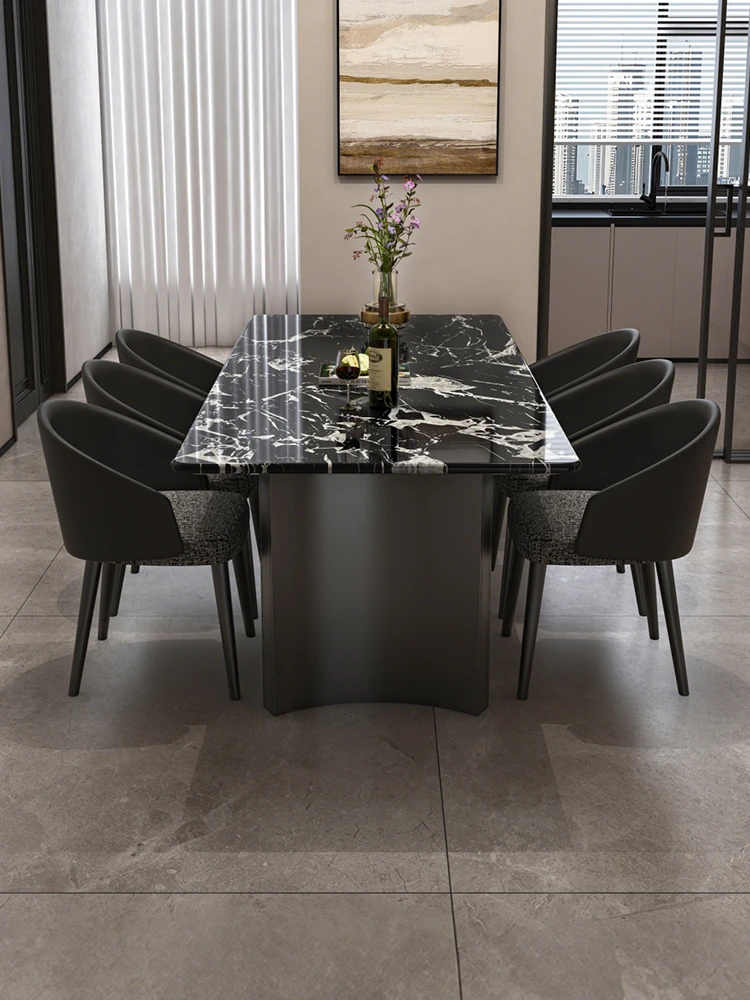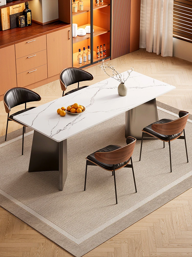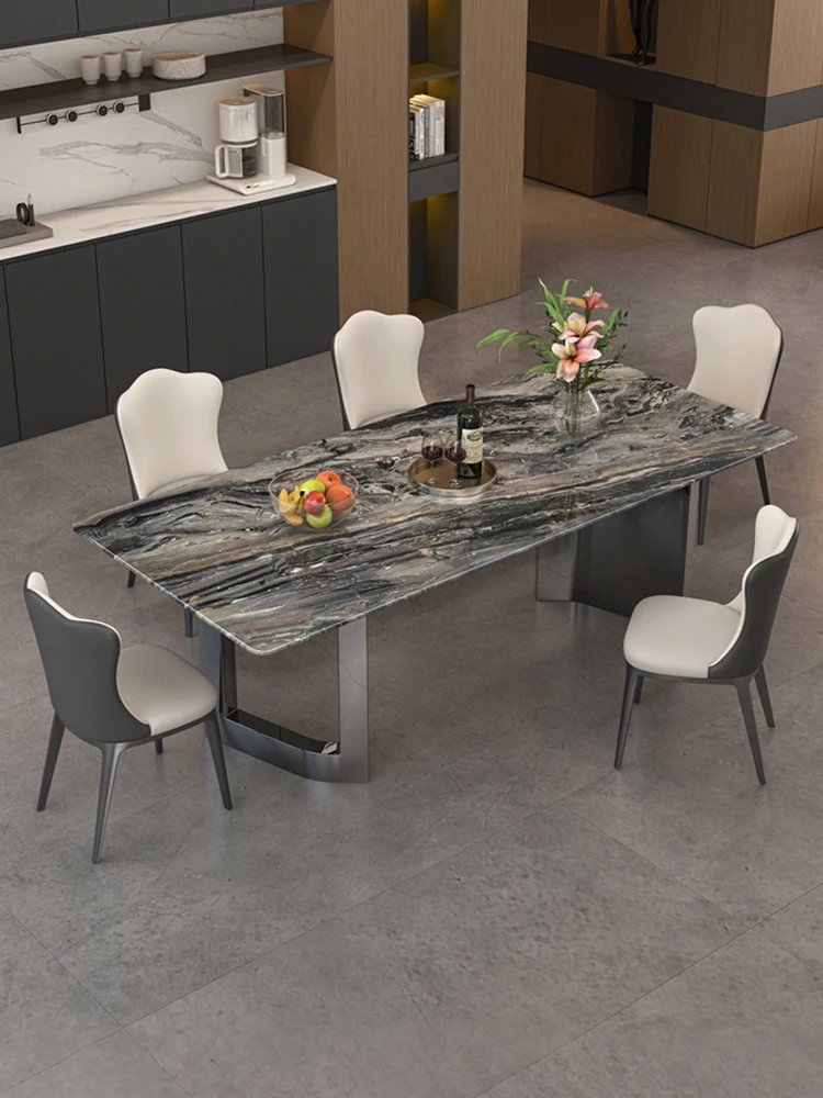 Modern Italian Luxury Rectangular Dining Table Set with Snow Mountain Stone Surface - Elegant Minimalist Design for Upscale Dining Experience