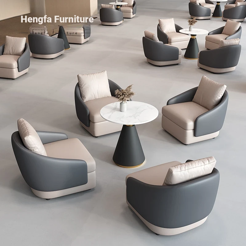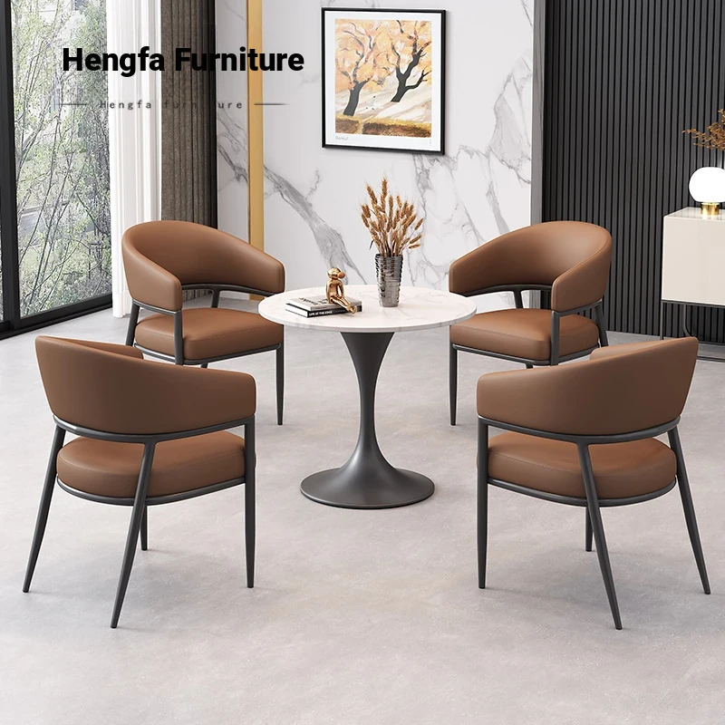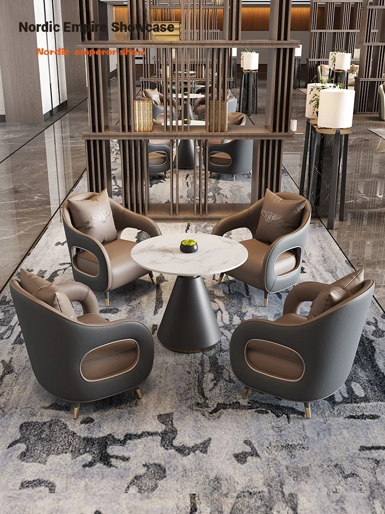 Modern Light Luxury Sales Office Negotiation Table Set - Round Table with 4 Chairs for Client Meetings and Discussions, Perfect for Welcoming Guests and Enhancing Professional Atmosphere.
