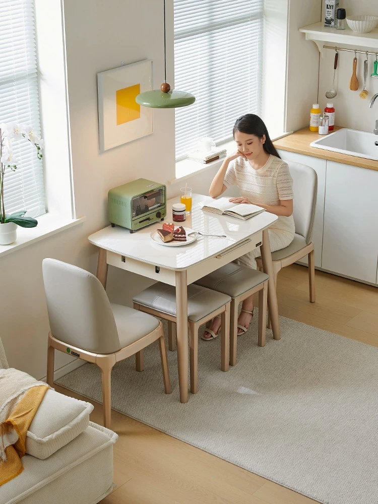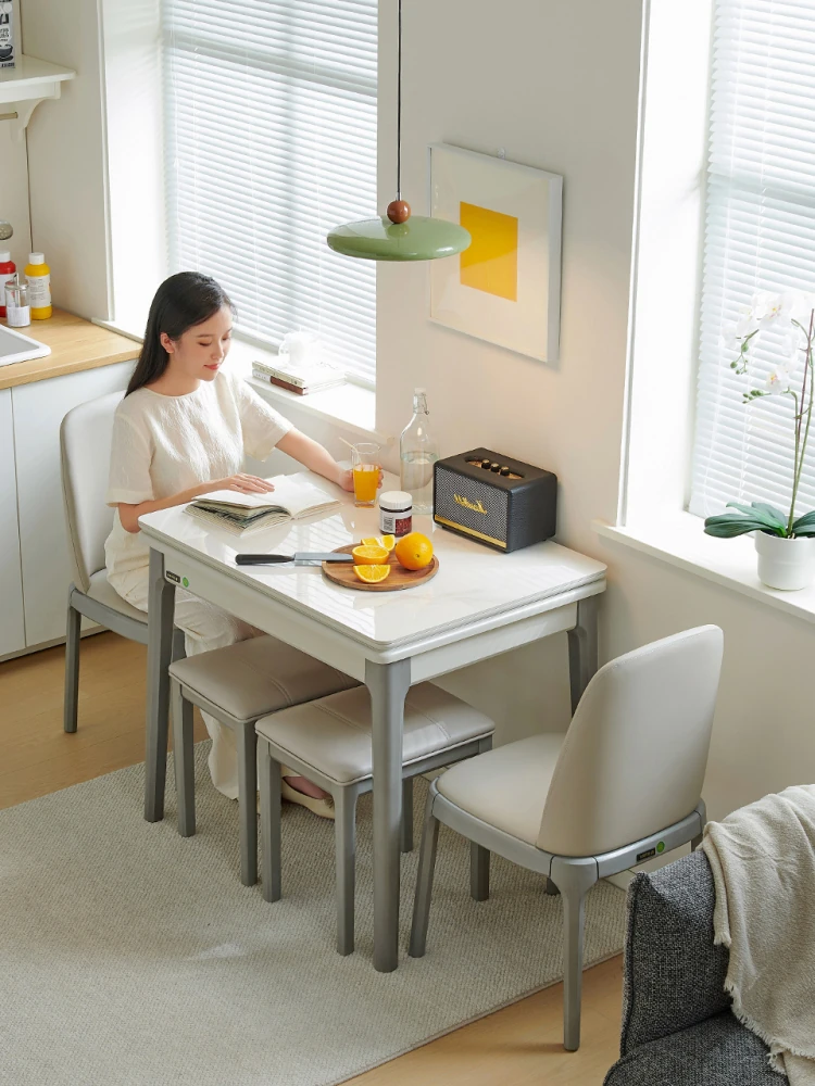 2025 New Stylish Foldable Dining Table for Small Spaces - Expandable Rectangular Design with Durable Rock Plate, Perfect for Home Use and Versatile Functionality