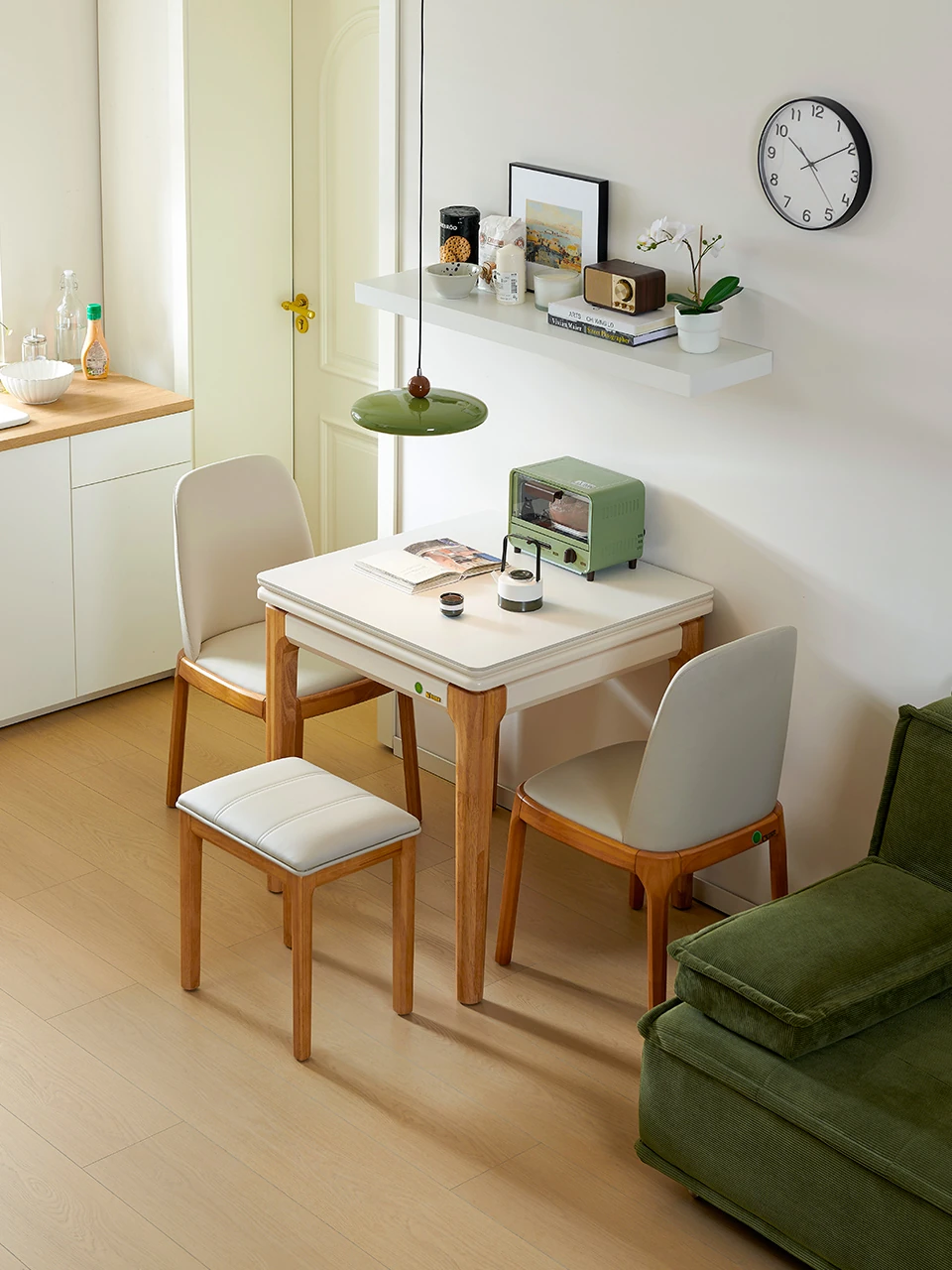Modern Minimalist Foldable Dining Table for Small Spaces - Square Solid Wood and Rock Plate Design for Apartments, Ideal for Dining in Style with Scandinavian Elegance.