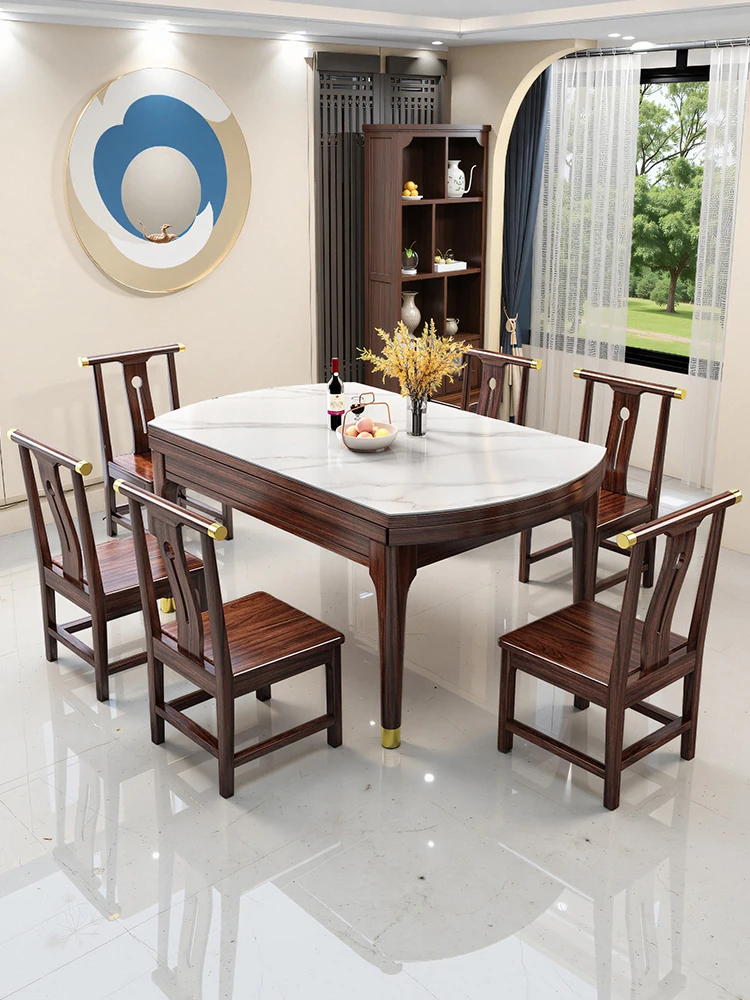 Foshan New Chinese Style Solid Blackwood Dining Table and Chair Set - Luxurious, Foldable, and Expandable Design for Small Spaces, Round and Square Versatility