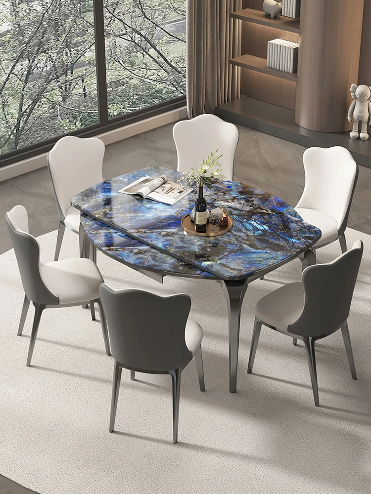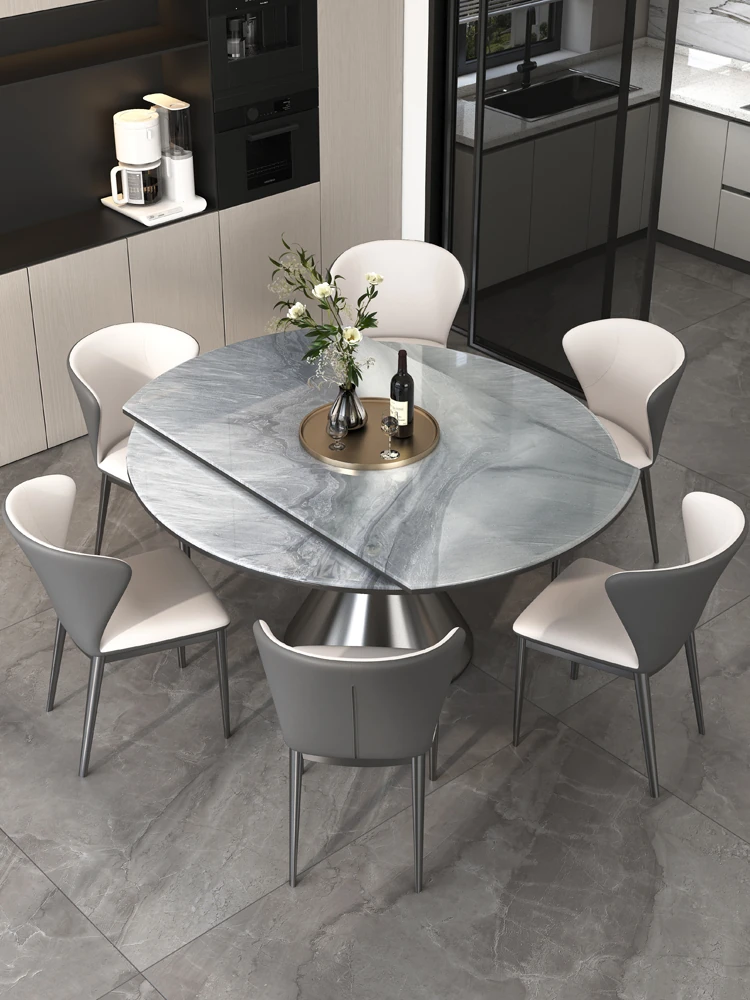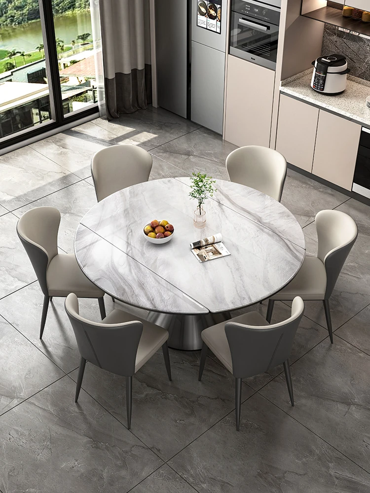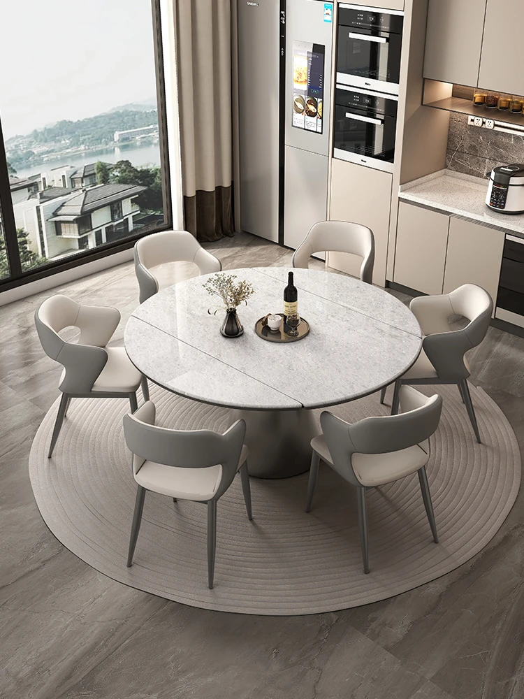 Expandable Microcrystal Stone Dining Table with Natural Marble - Elegant Round Design for Home Use, Featuring Minimalist Luxury Style with Premium Dining Chair Set - New Arrival