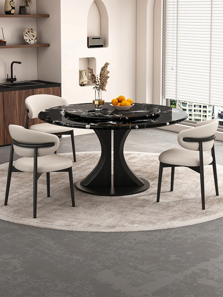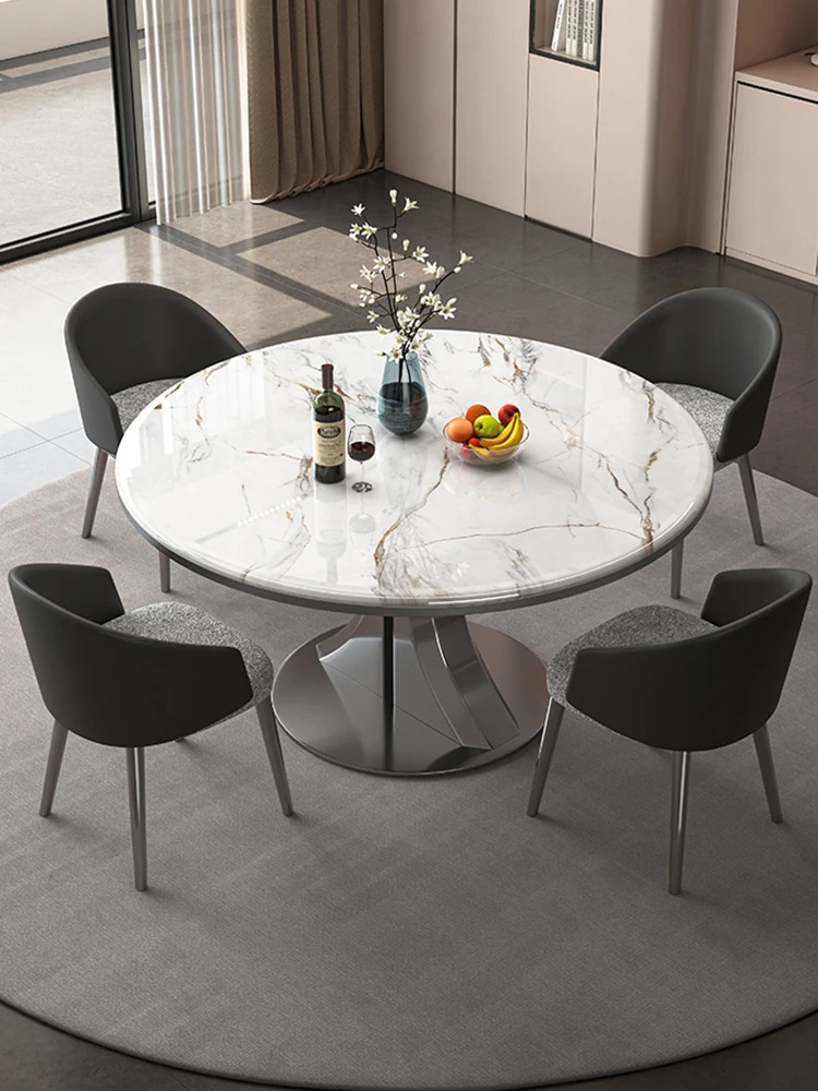 Elegant Microcrystalline Stone Round Dining Table - New Italian High-End Minimalist Design with Premium Marble Finish - Perfect for Stylish Home Dining Sets