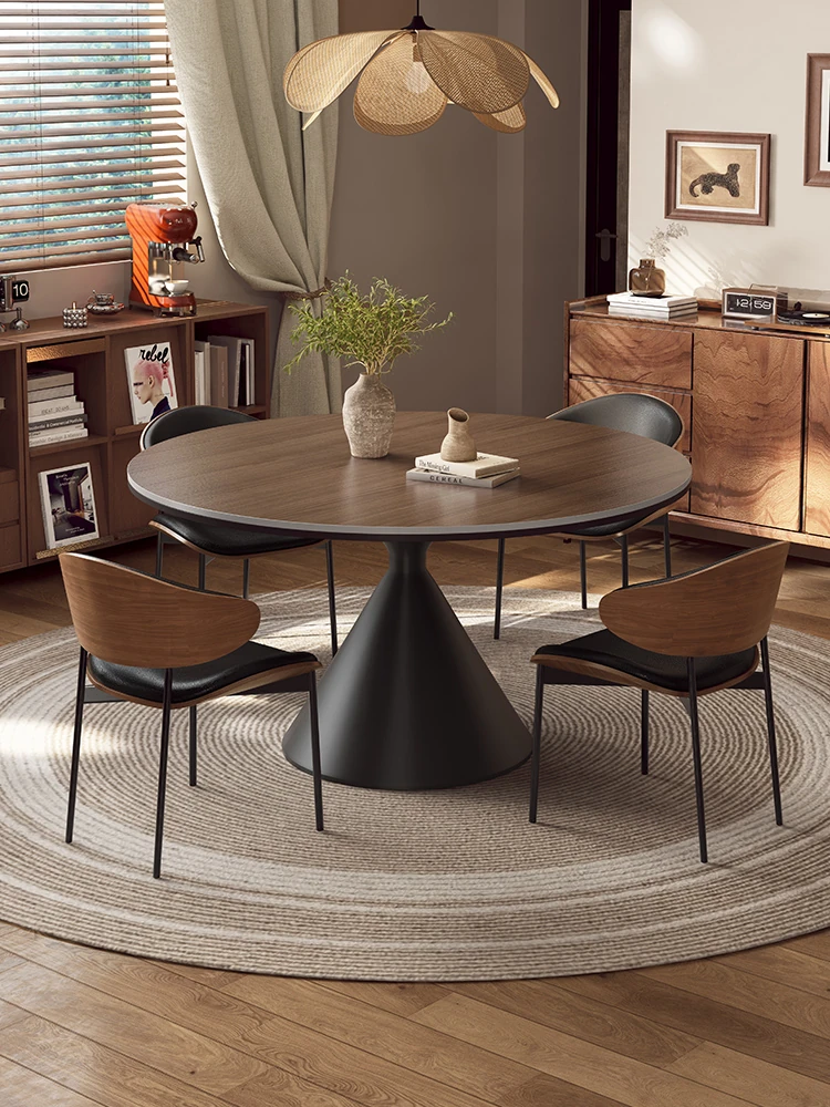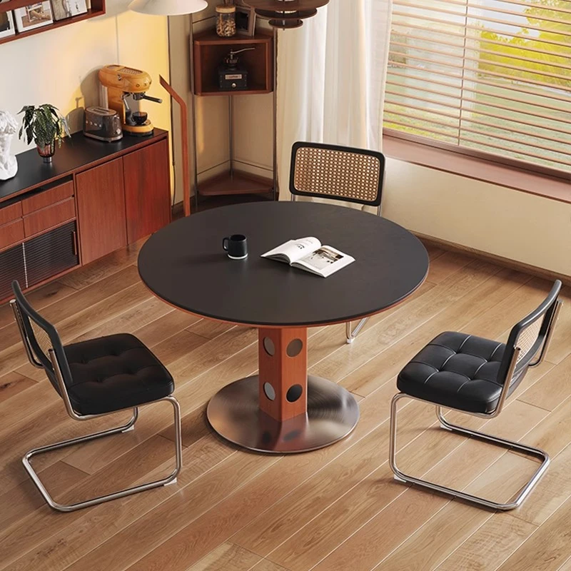2025 New Vintage Round Dining Table with Retro Metal Legs - Nordic Bauhaus Style Solid Wood and Rock Plate - Perfect for Stylish Dining Spaces