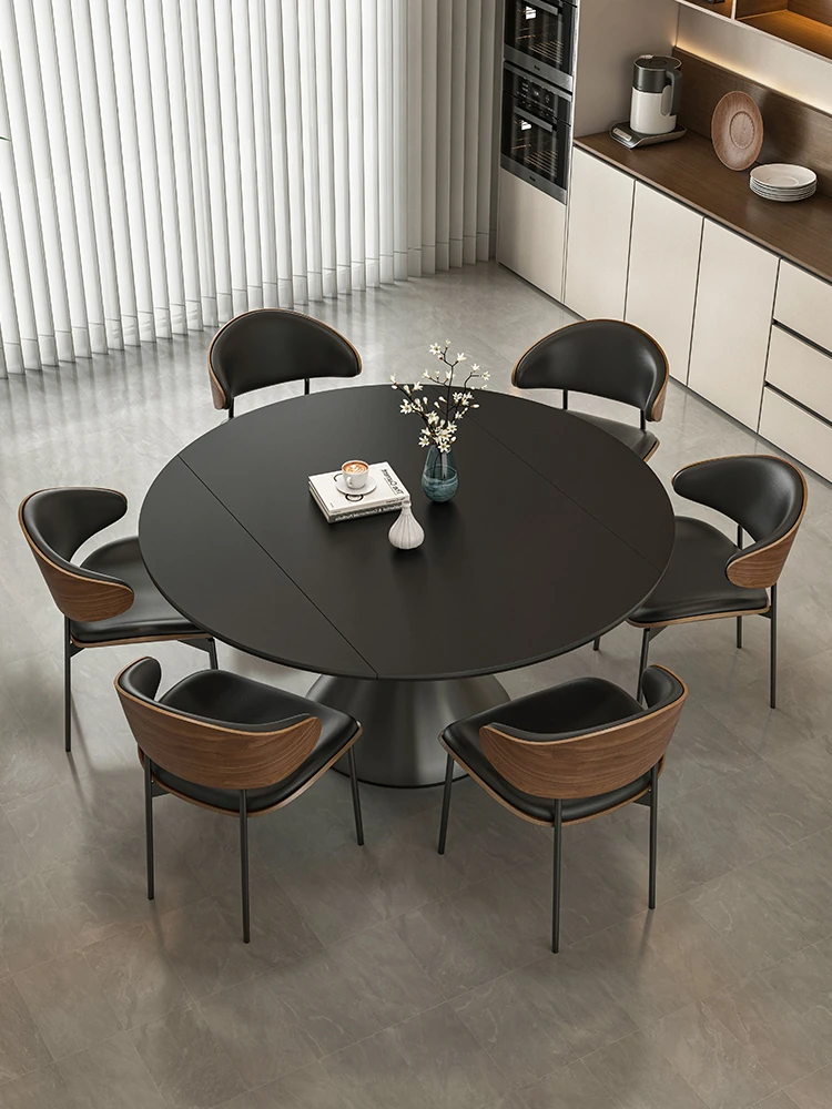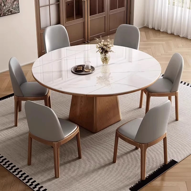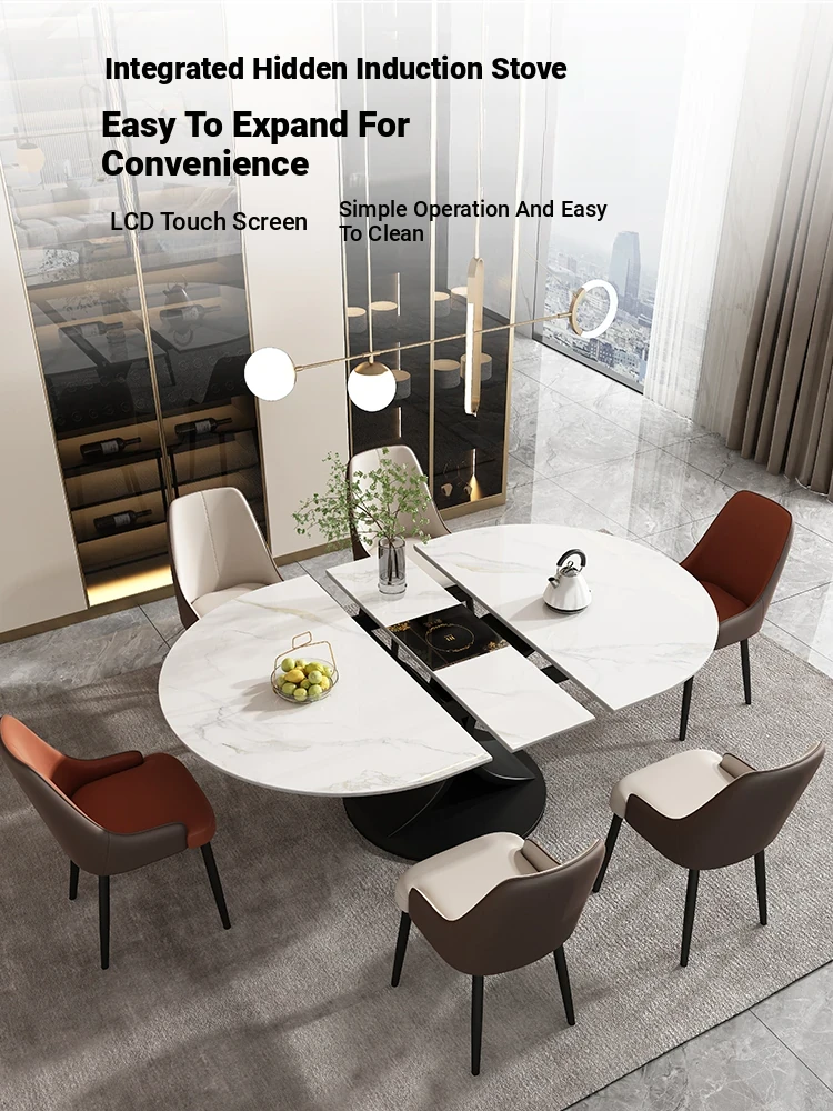 Stylish and Versatile Expandable Dining Table - Modern Minimalist Round Table with Induction Cooker, Foldable Dining Set for Home Use