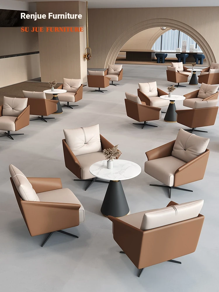 Elegant Minimalist Lounge Furniture Set for Sales Office – Modern Conference Table and Chairs for Hotel Lobby, Perfect for Business Meetings and Relaxed Guest Reception.