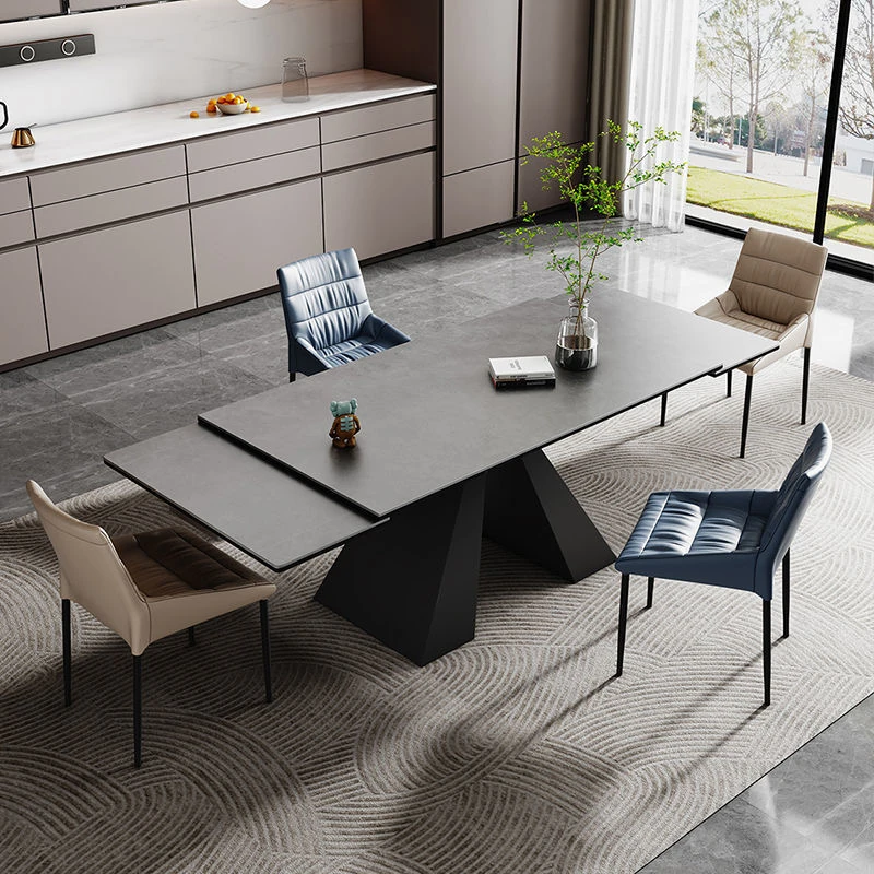 Italian Imported Rock Plate Dining Table - Modern Minimalist Expandable Rectangular Folding Table and Chairs for Small Spaces, Perfect for Luxury Home Dining