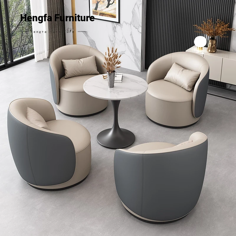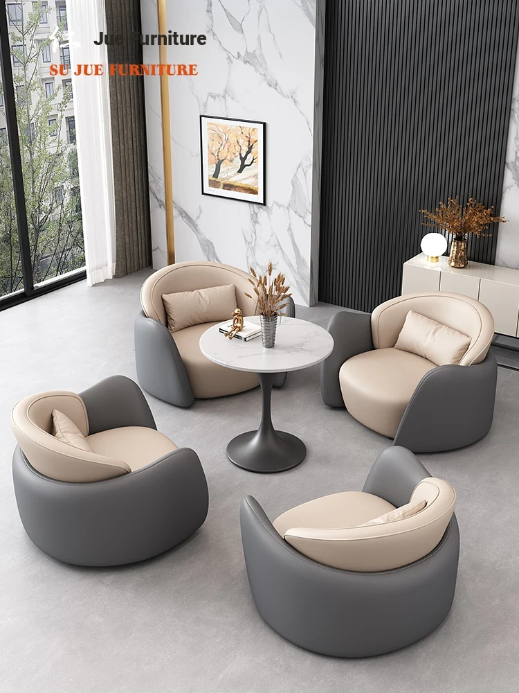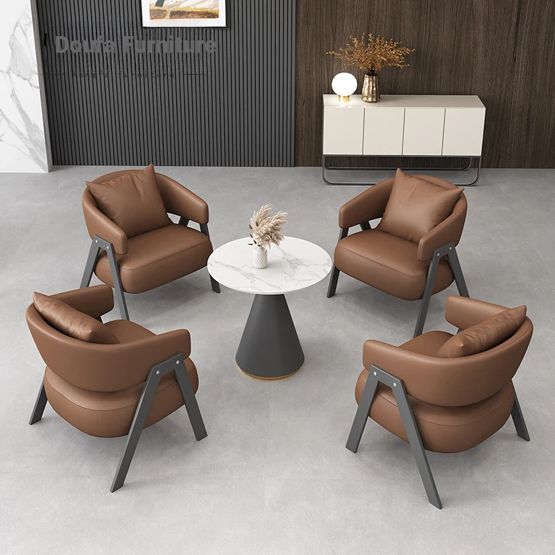 Elegant Luxury Sales Office Meeting Table and Chair Set - Stylish Reception Sofa with Small Round Table, Perfect for Negotiations and Casual Meetings (One Table, Four Chairs)