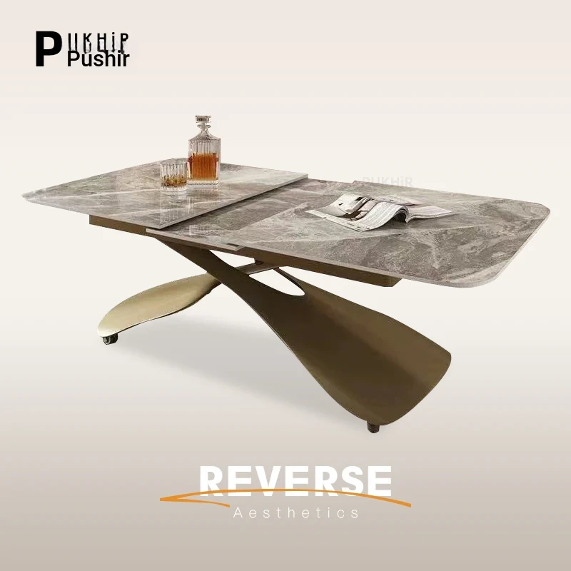 Multifunctional Lift-Top Coffee Table and Dining Table for Small Spaces - Expandable and Foldable Ceramic Table for Living Room, Perfect for Home Use