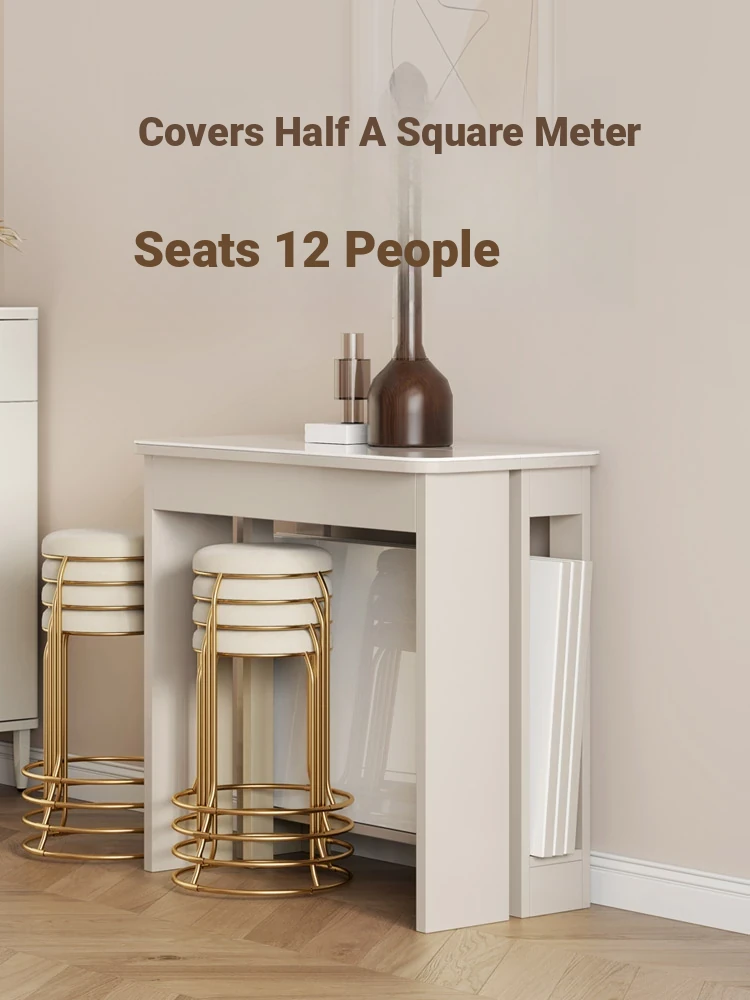 Compact Expandable Dining Table for Small Spaces - Modern Minimalist Design, Foldable with Elegant Stone and Solid Wood Finish, Perfect for Cozy Homes