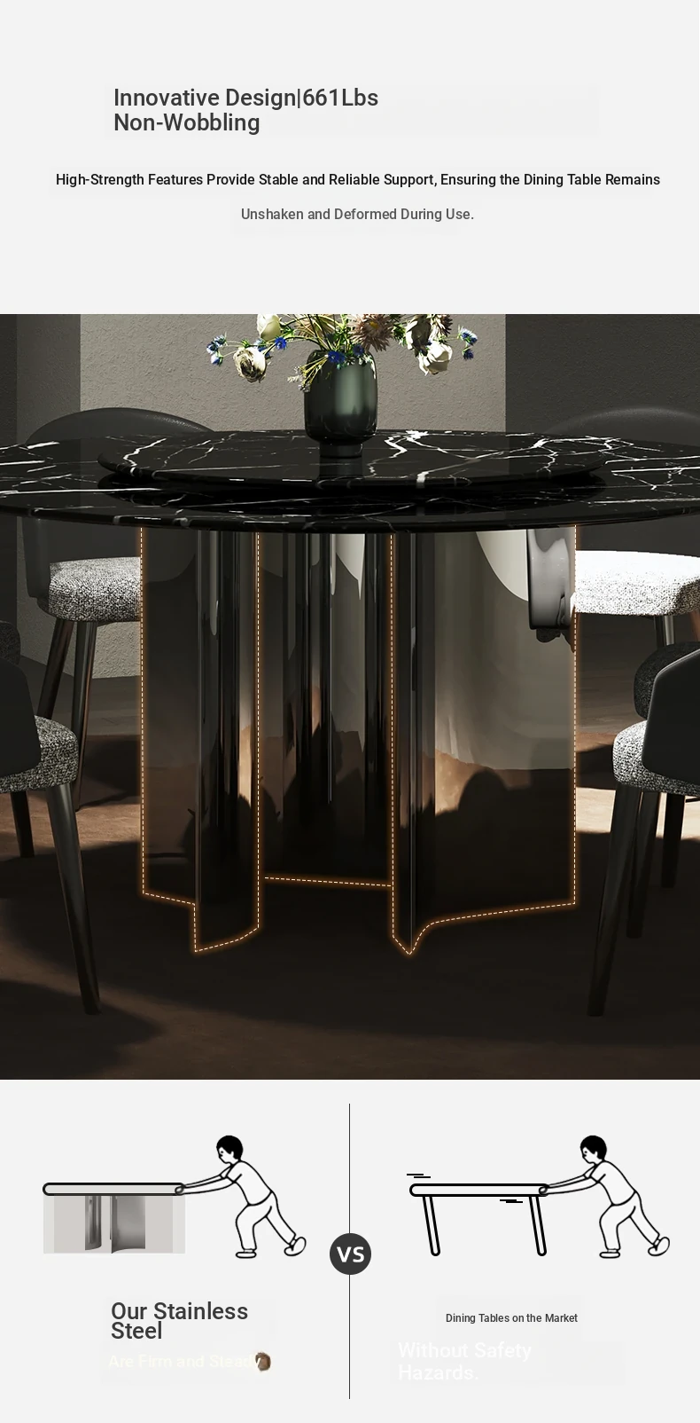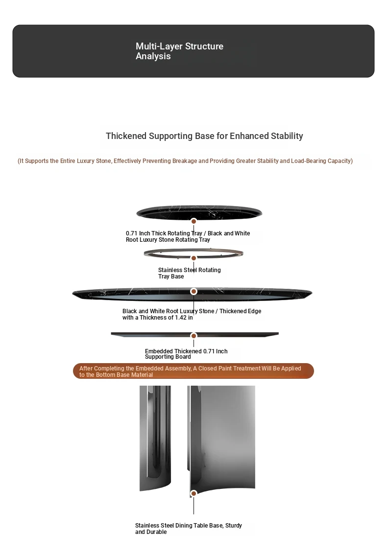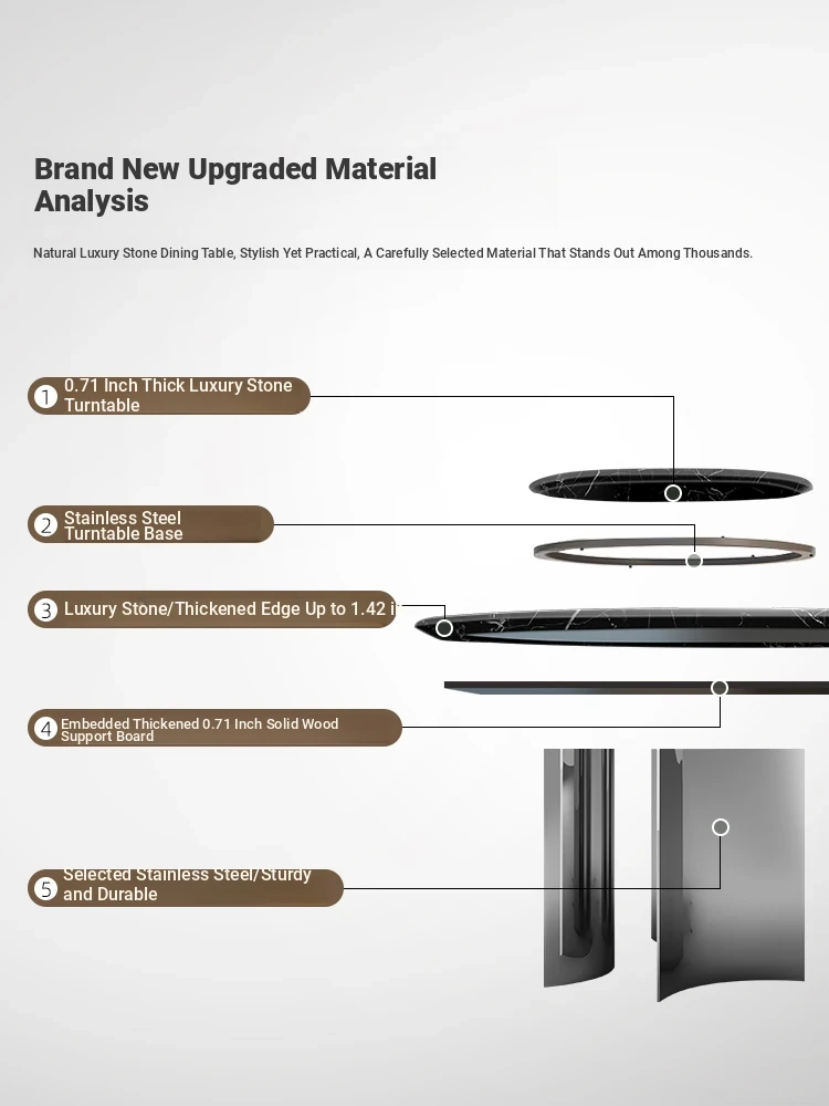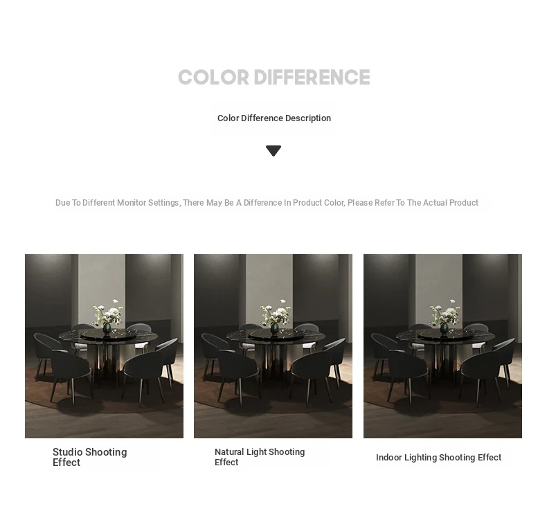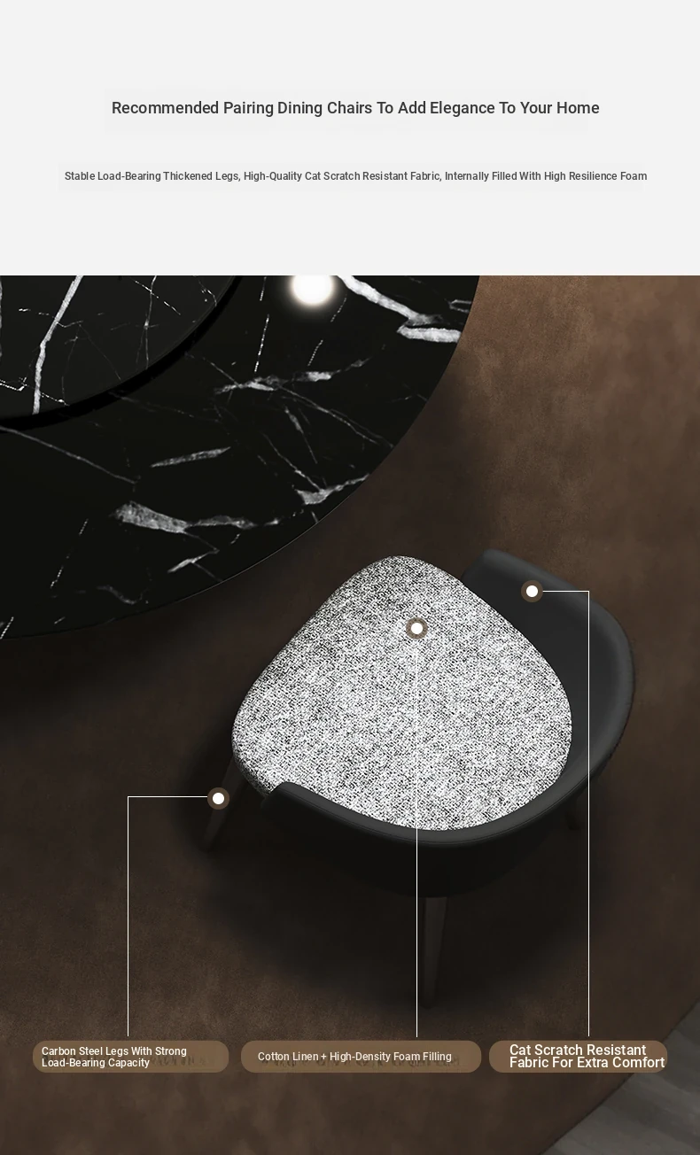 Natural black and white root luxury stone dining table + turntable + Classy leather dining chair * 6