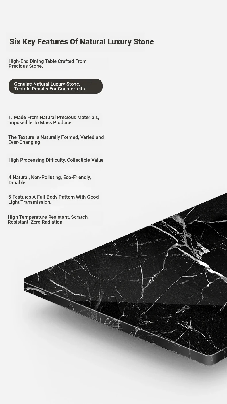 Natural black and white root luxury stone dining table + Classy leather dining chair * 6