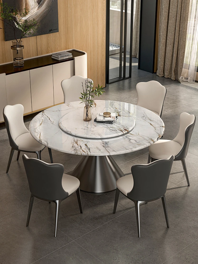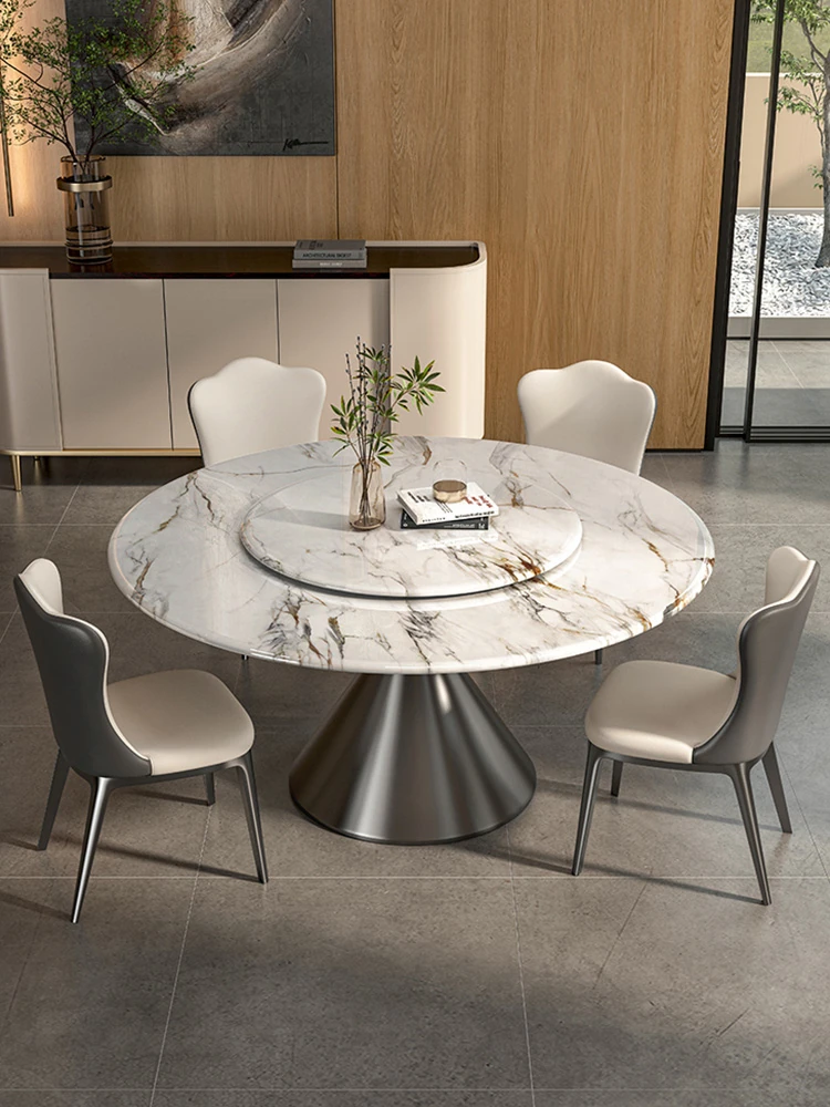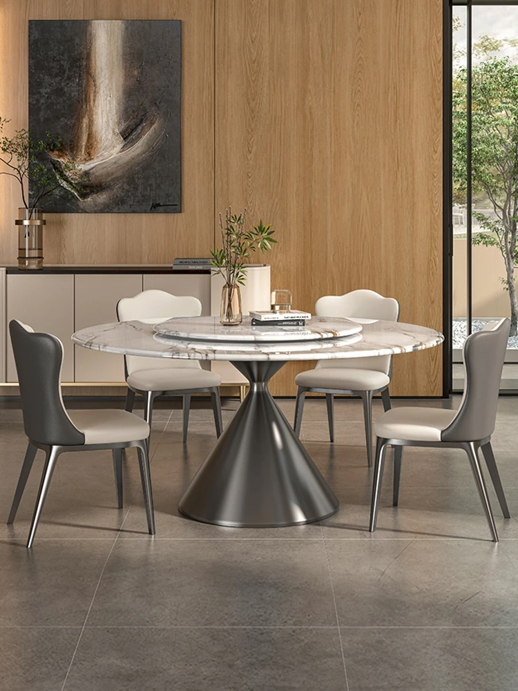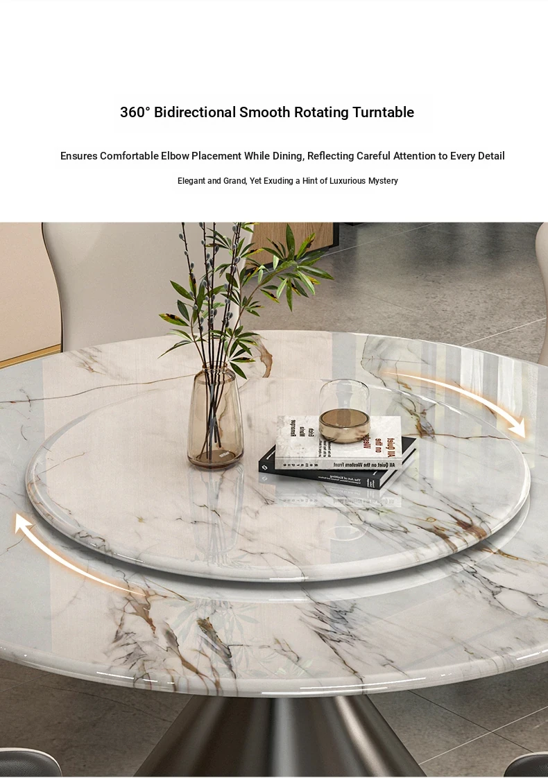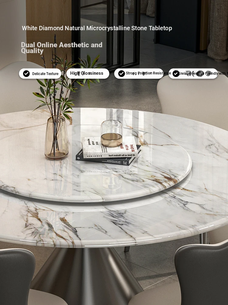 2025 New Luxury Round Microcrystalline Stone Dining Table with Rotating Tray - Elegant High-End Marble Table and Chairs for Home Use