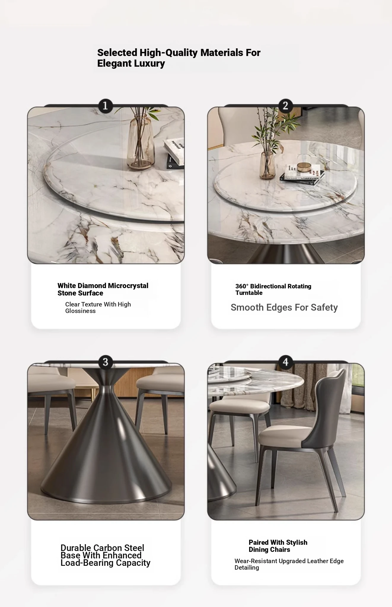 51.18in natural microcrystalline stone dining table [with turntable] + cat scratch leather dining chair * 4