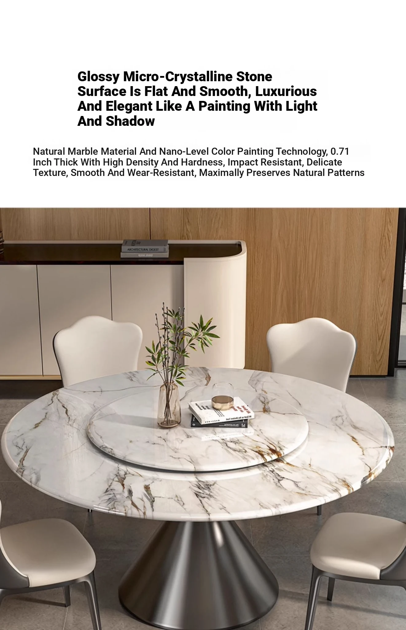 47.24in natural microcrystalline stone dining table [with turntable]]