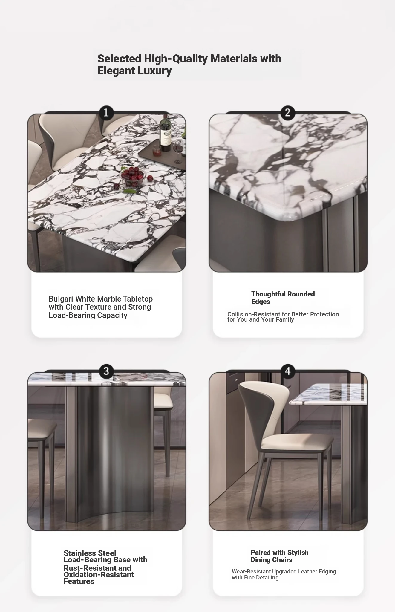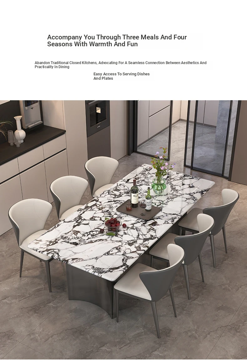 2025 New Rectangular Marble Dining Table - Modern Minimalist Italian Luxury Design for High-End Home Use with Elegant Dining Chairs
