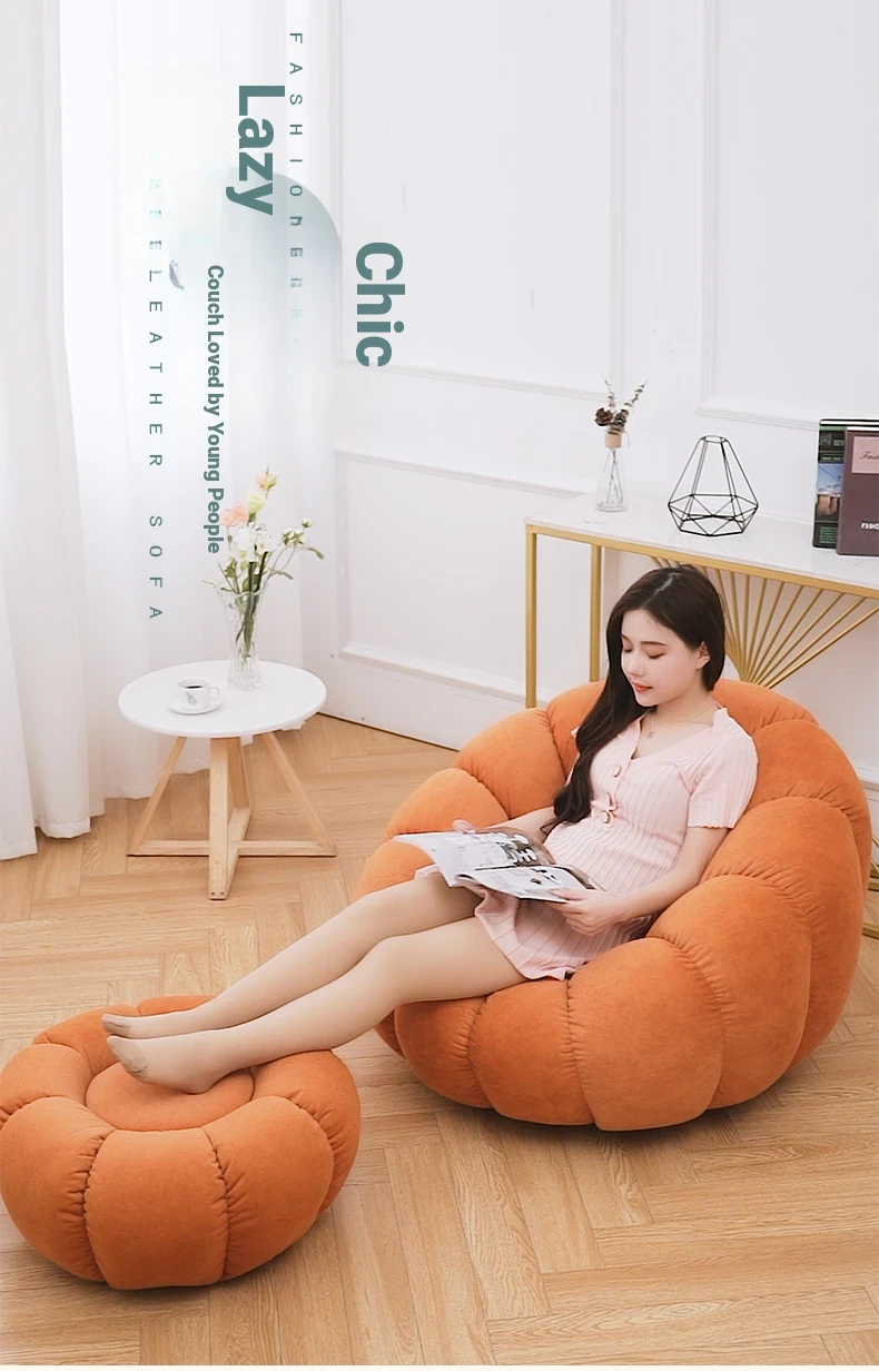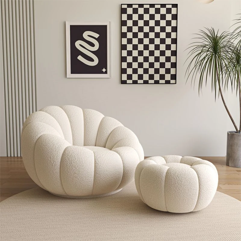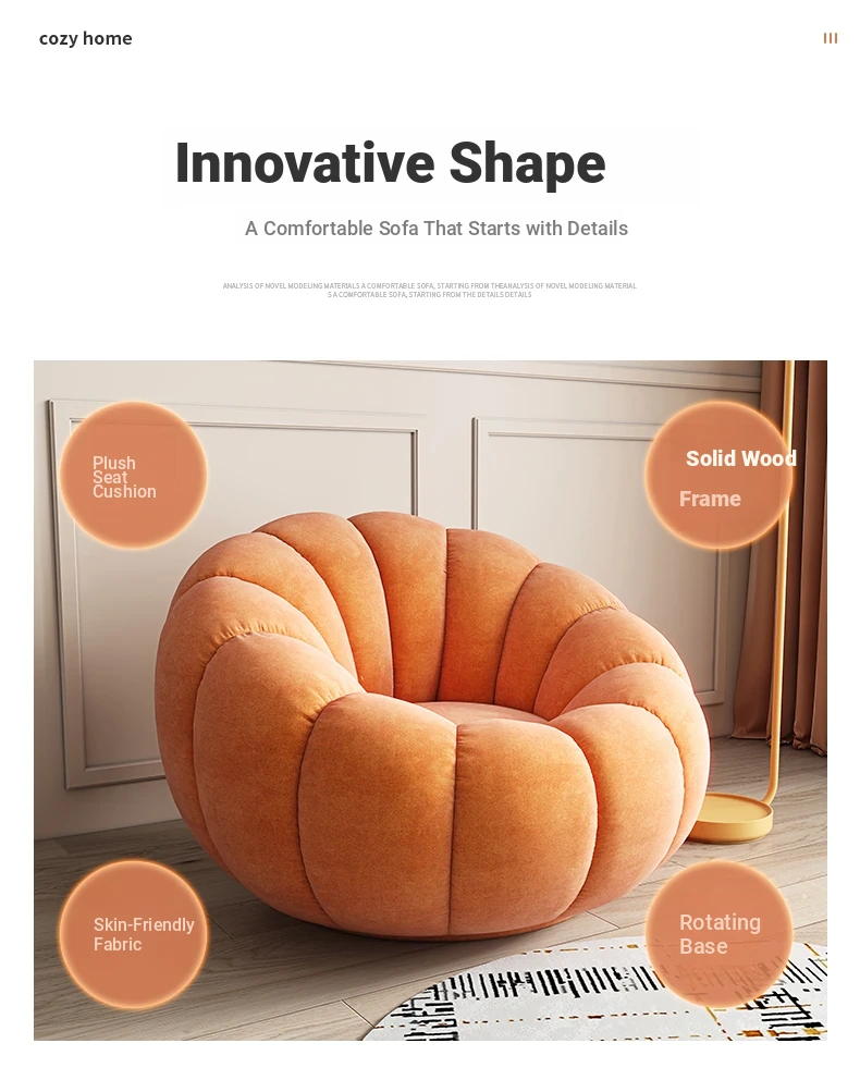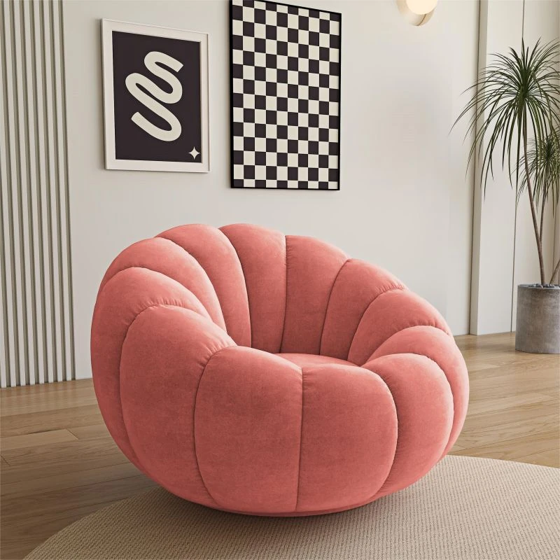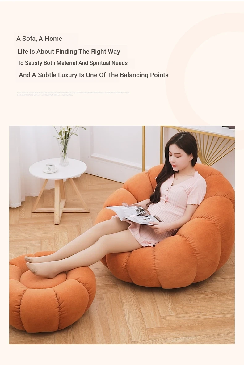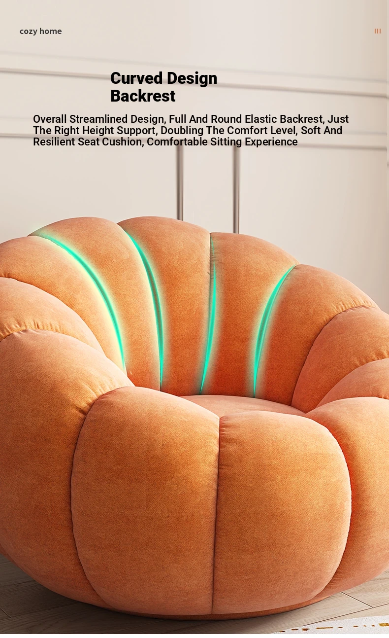 Creamy Cozy Sofa Chair - Versatile Reclining and Sleeping Lounger for Balcony, Perfect for Relaxation. Stylish Pumpkin-Shaped Single Sofa with Rotating Design, Ideal for Small Spaces.