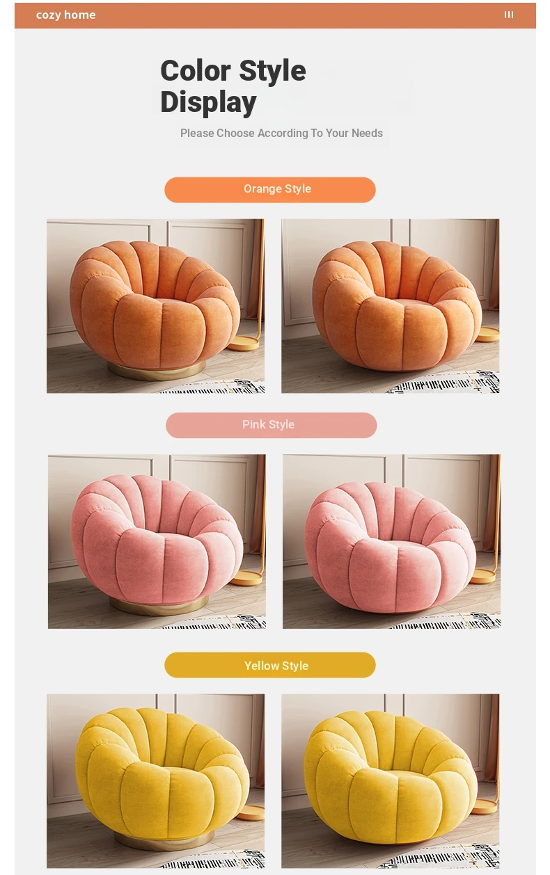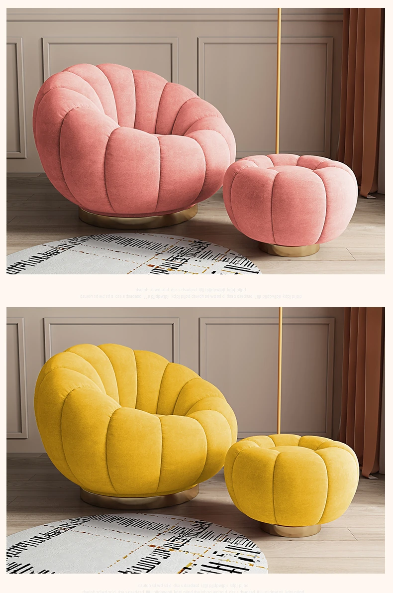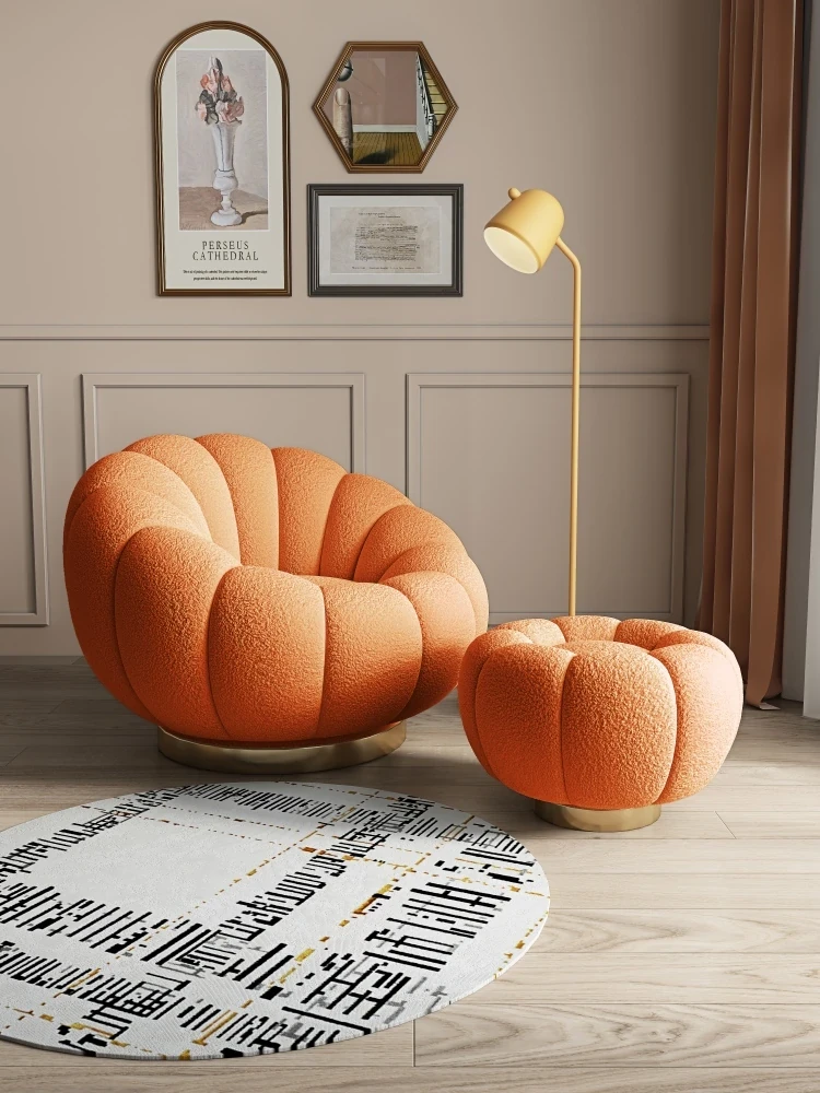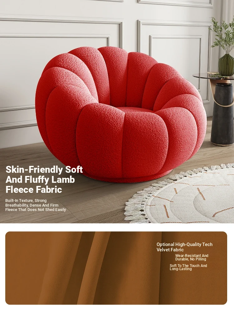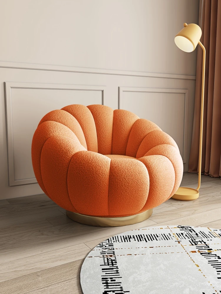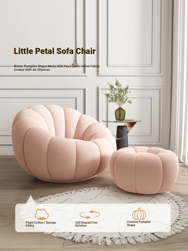 Creamy Cozy Sofa Chair - Versatile Reclining and Sleeping Lounger for Balcony, Perfect for Relaxation. Stylish Pumpkin-Shaped Single Sofa with Rotating Design, Ideal for Small Spaces.
