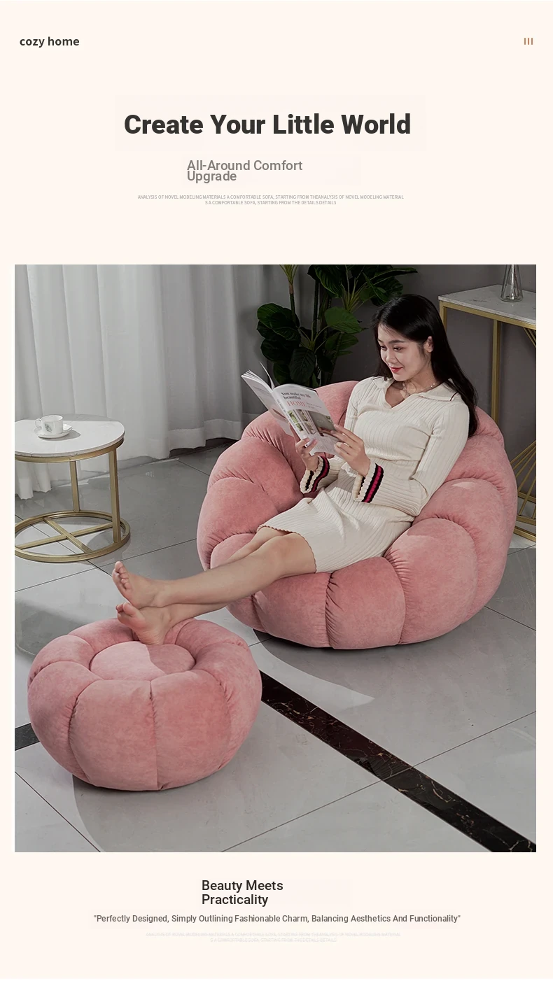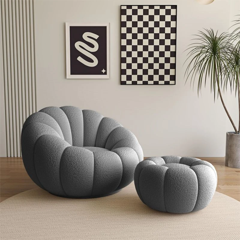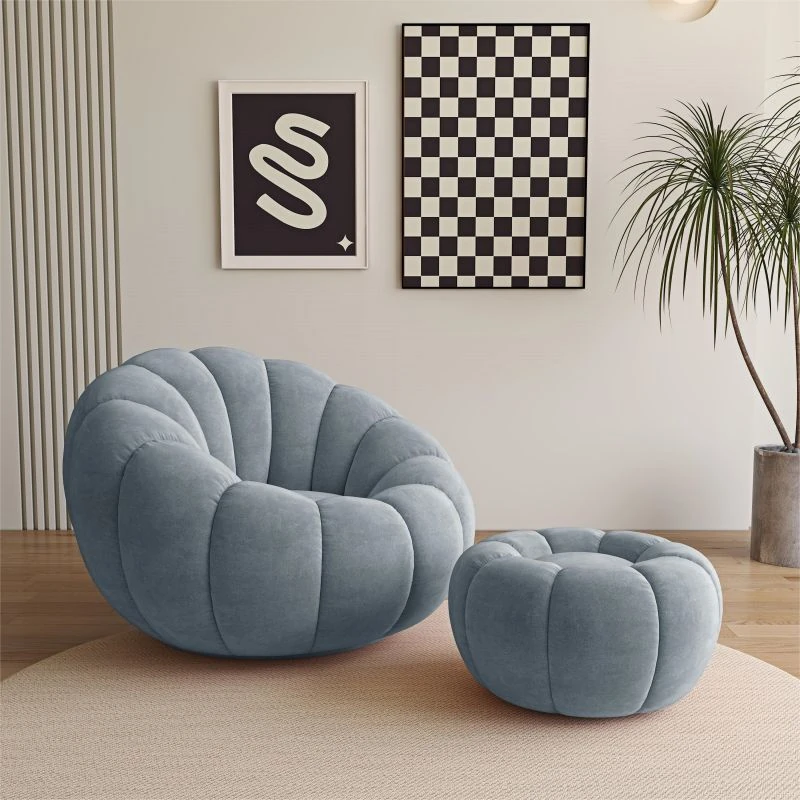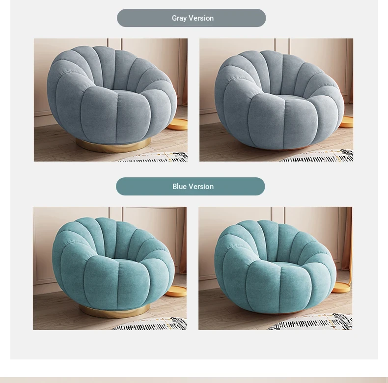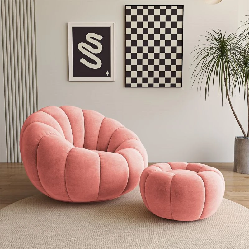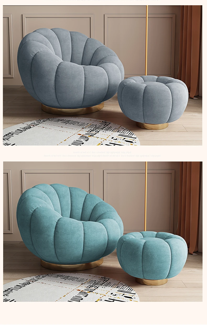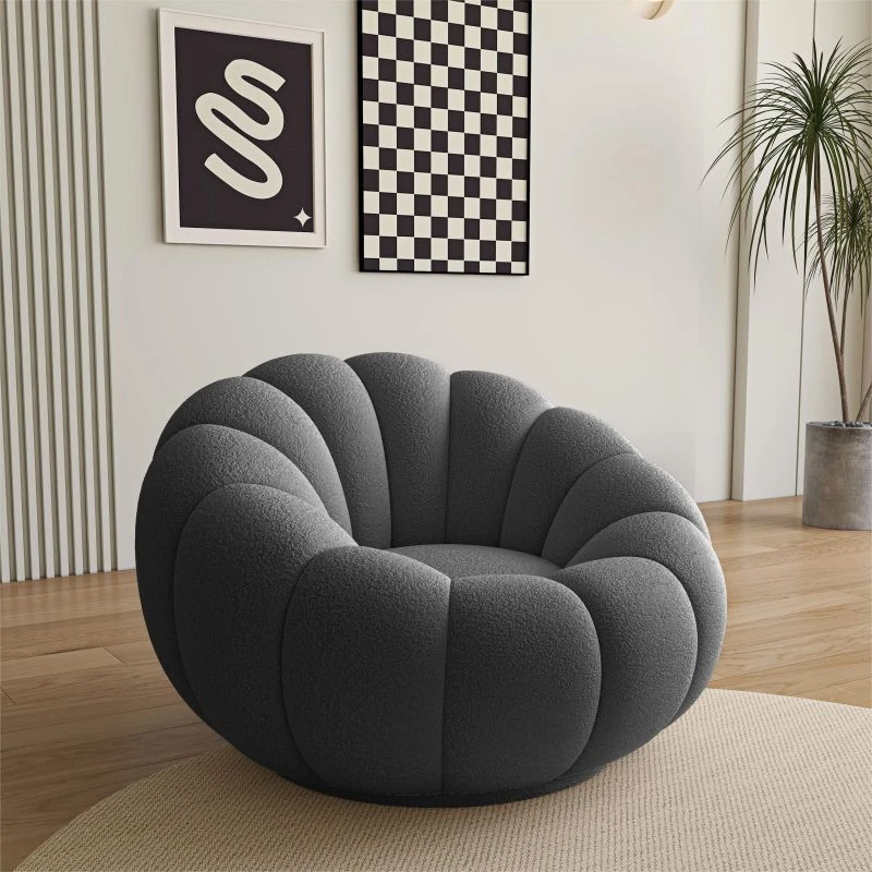 Creamy Cozy Sofa Chair - Versatile Reclining and Sleeping Lounger for Balcony, Perfect for Relaxation. Stylish Pumpkin-Shaped Single Sofa with Rotating Design, Ideal for Small Spaces.